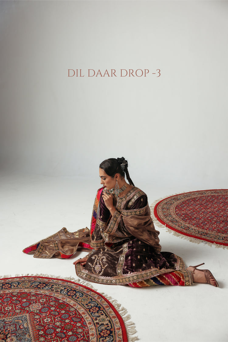 KURTA - Maroon Silk Velvet ChogaBOTTOM - Rose Pink Silk Velvet SalwarODHANI - Maroon Weave TissueEMBROIDERY- Zari AriNO OF COMPONENT - 3 Pcs Please note these are custom made to size.Please specify the lengths of Kurta & Bottom at check out in notes. This...