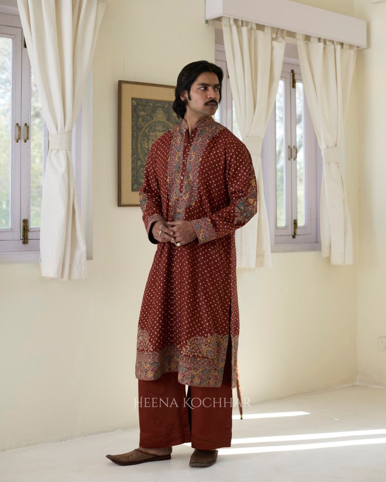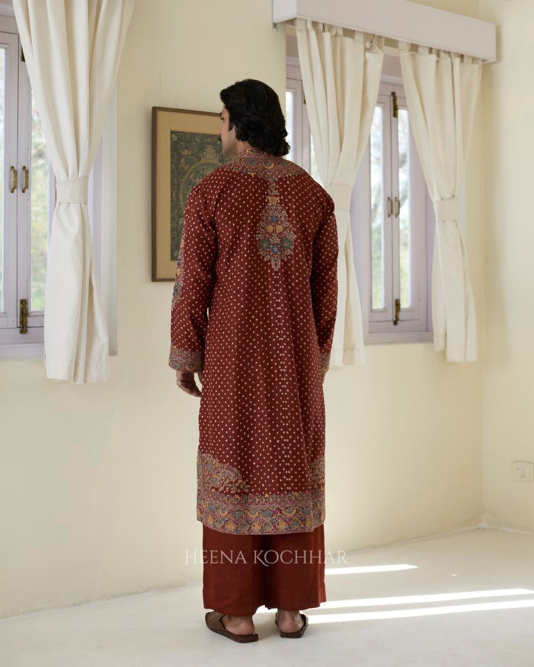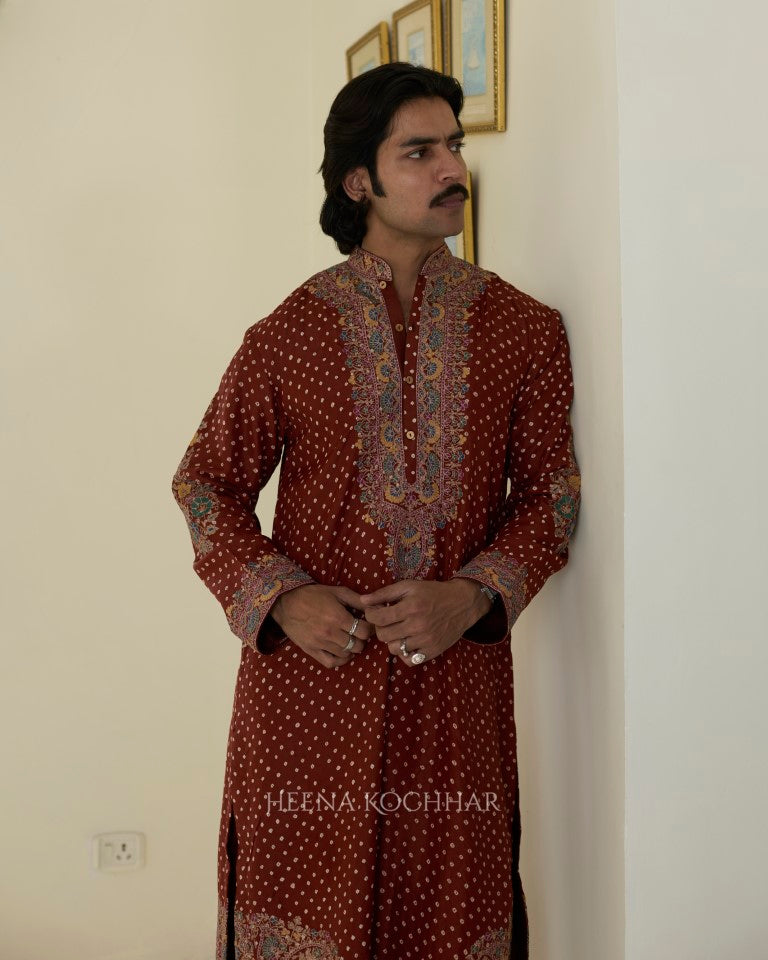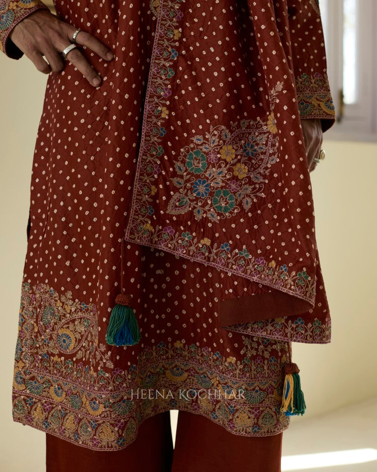 Kurta- Rust Silk Bandhani Kurta