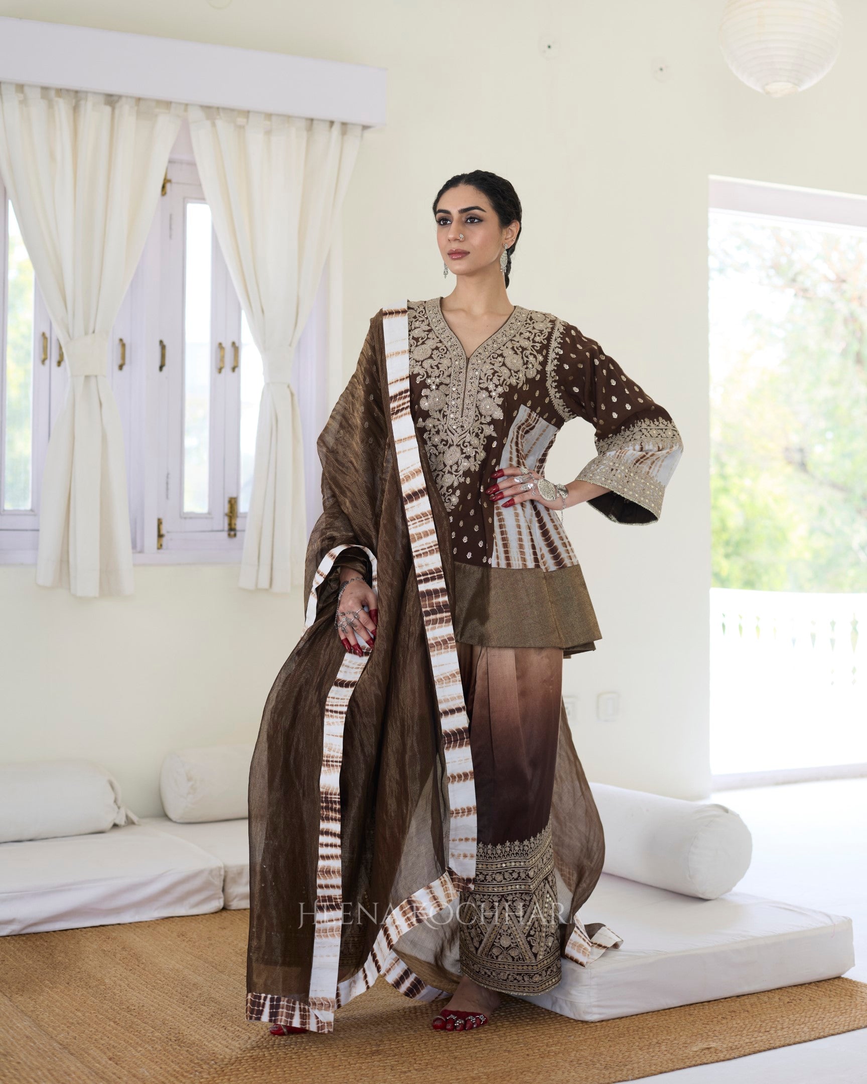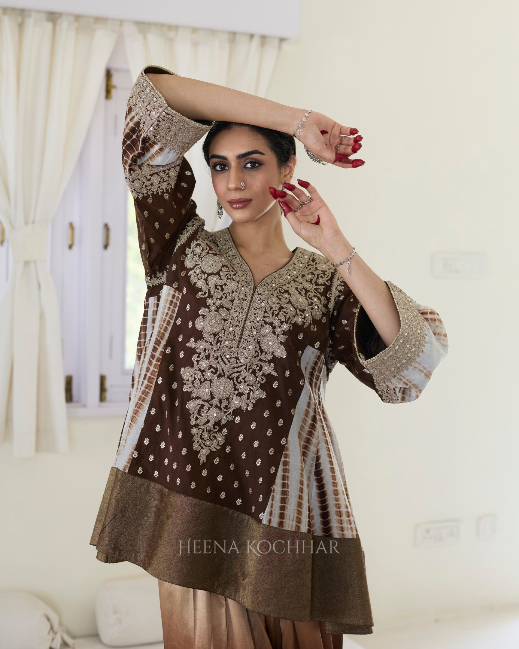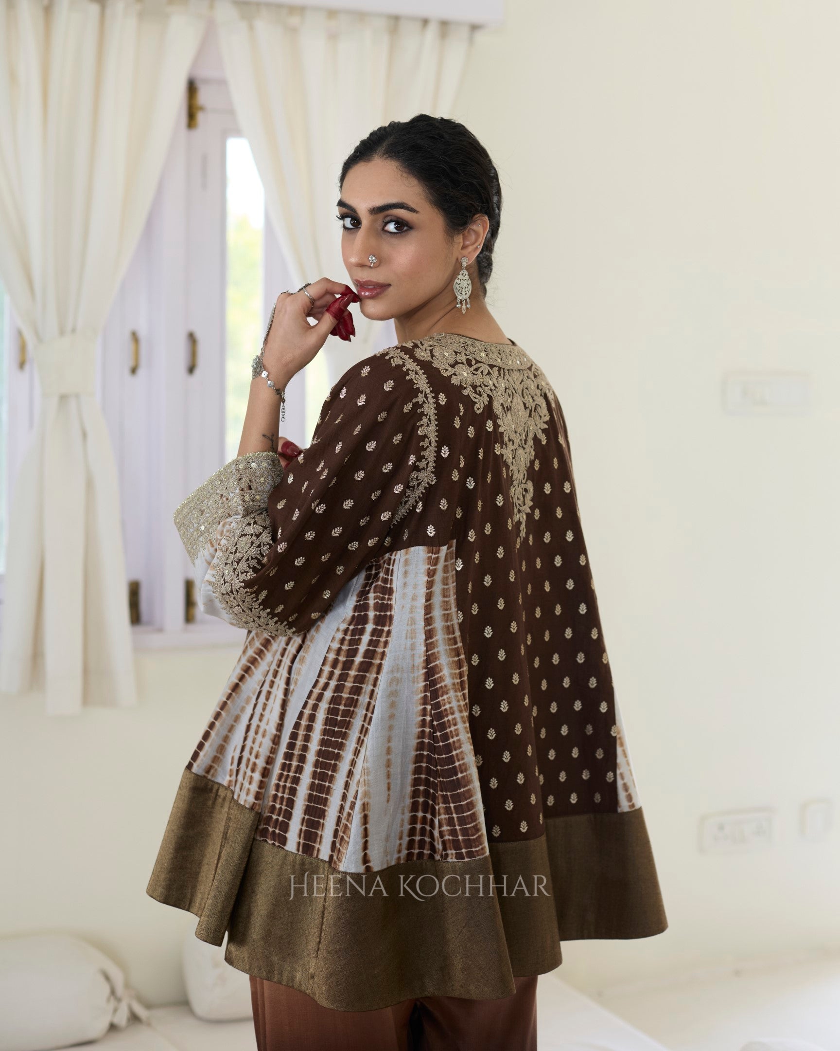 Kurta- Brown Chanderi Tie Dye With Chandla Choga