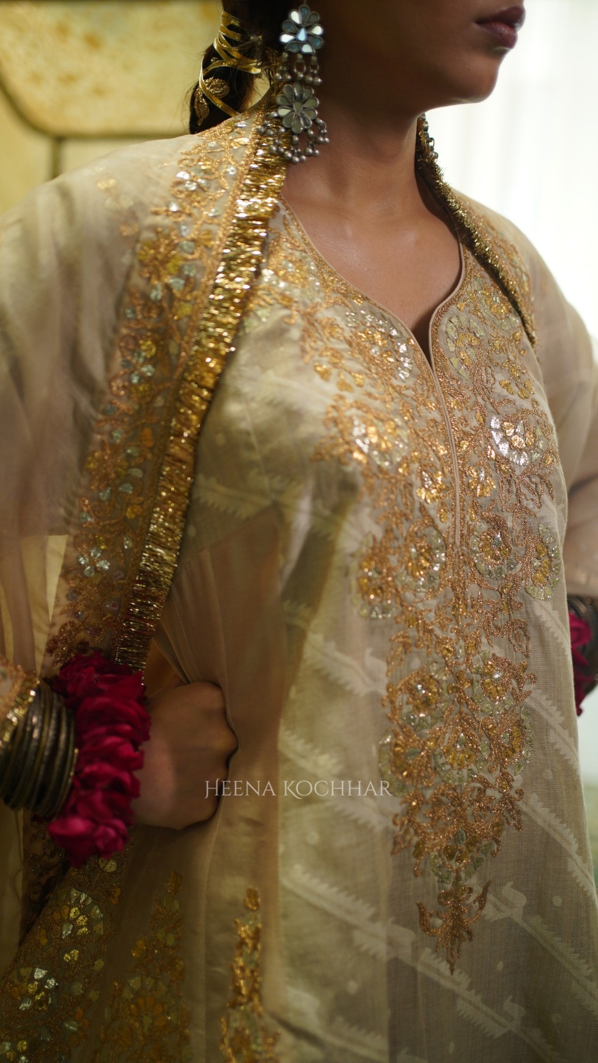 Kurta- SoftBeige Jamdani Chanderi Choga