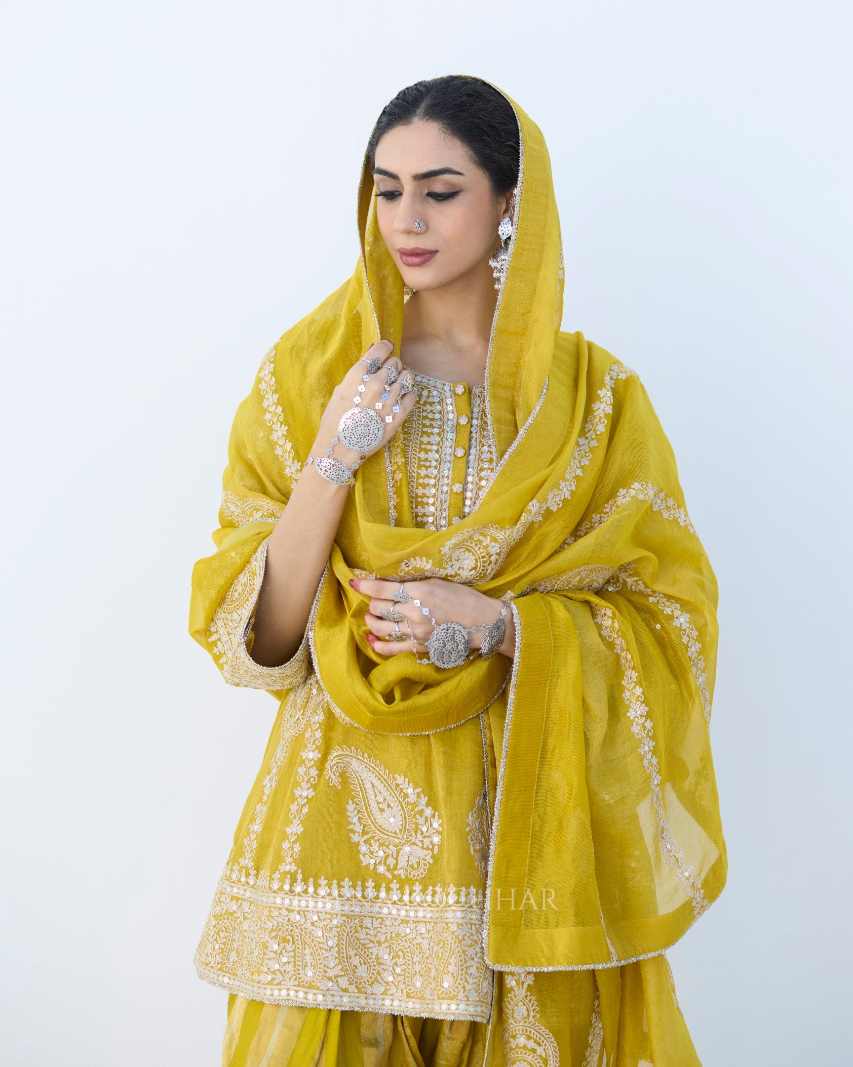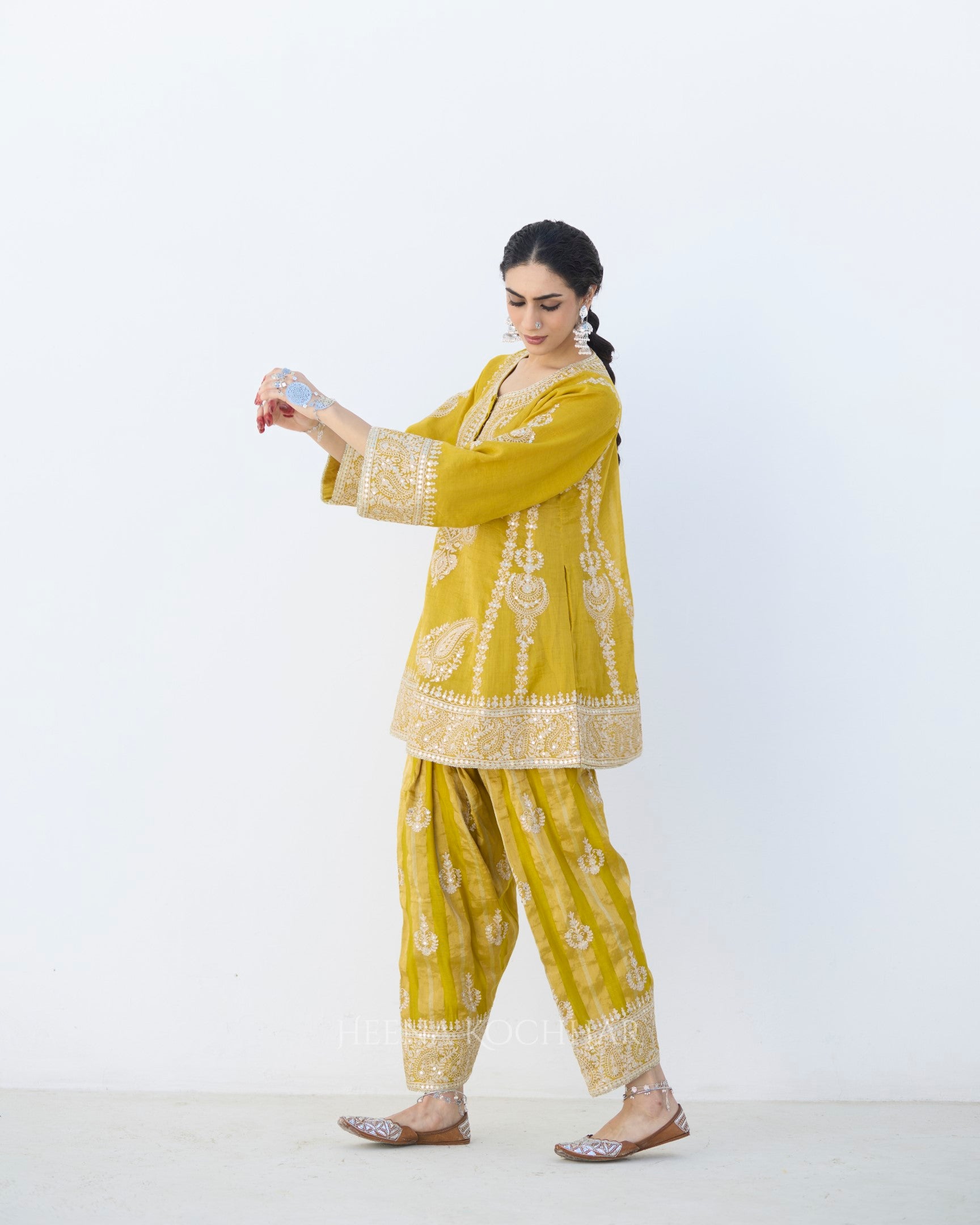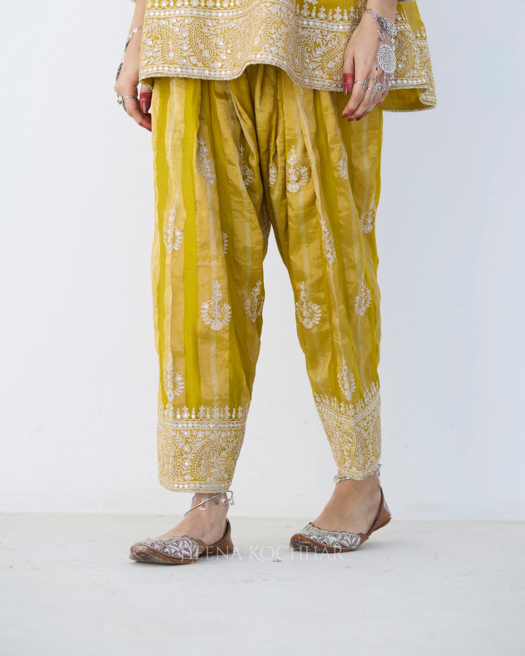 Bottom- Yellow Stripe Tissue Salwar