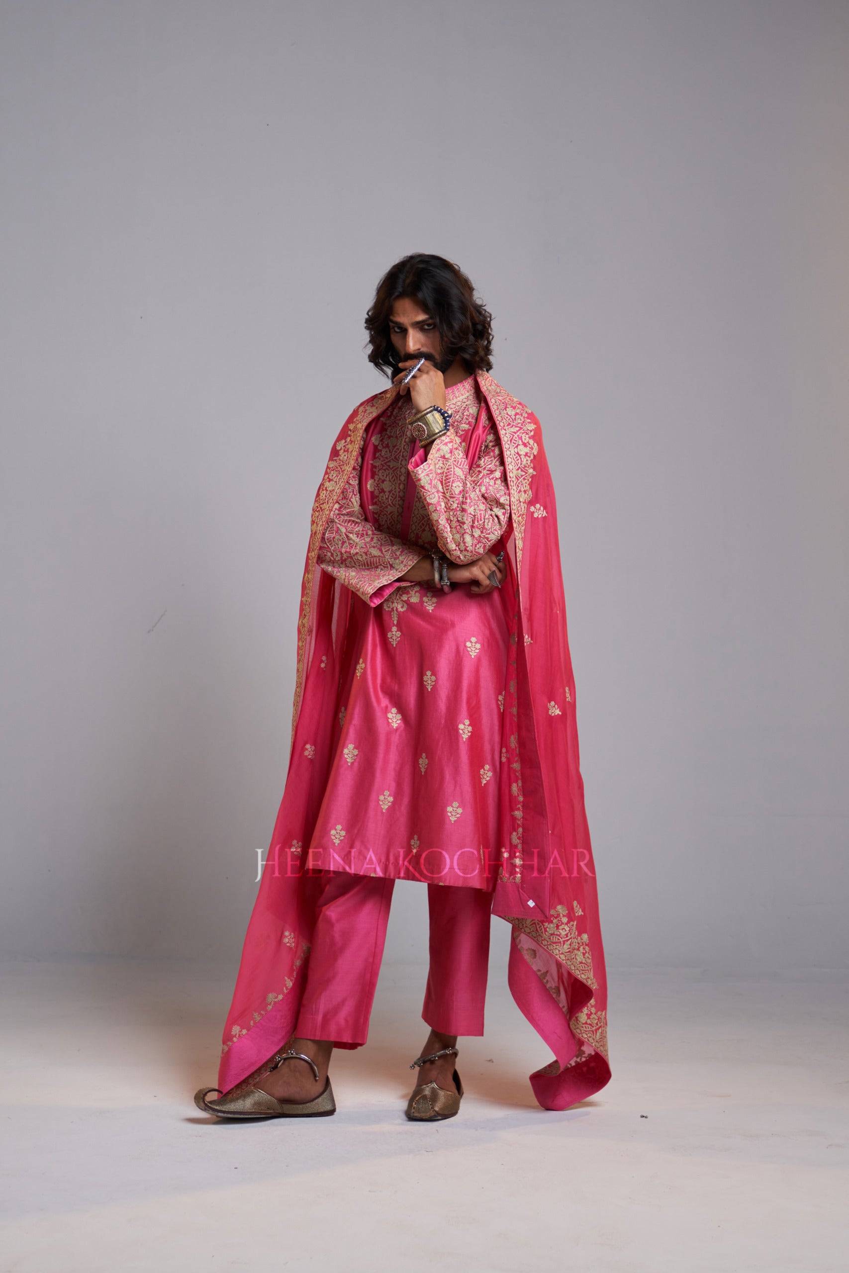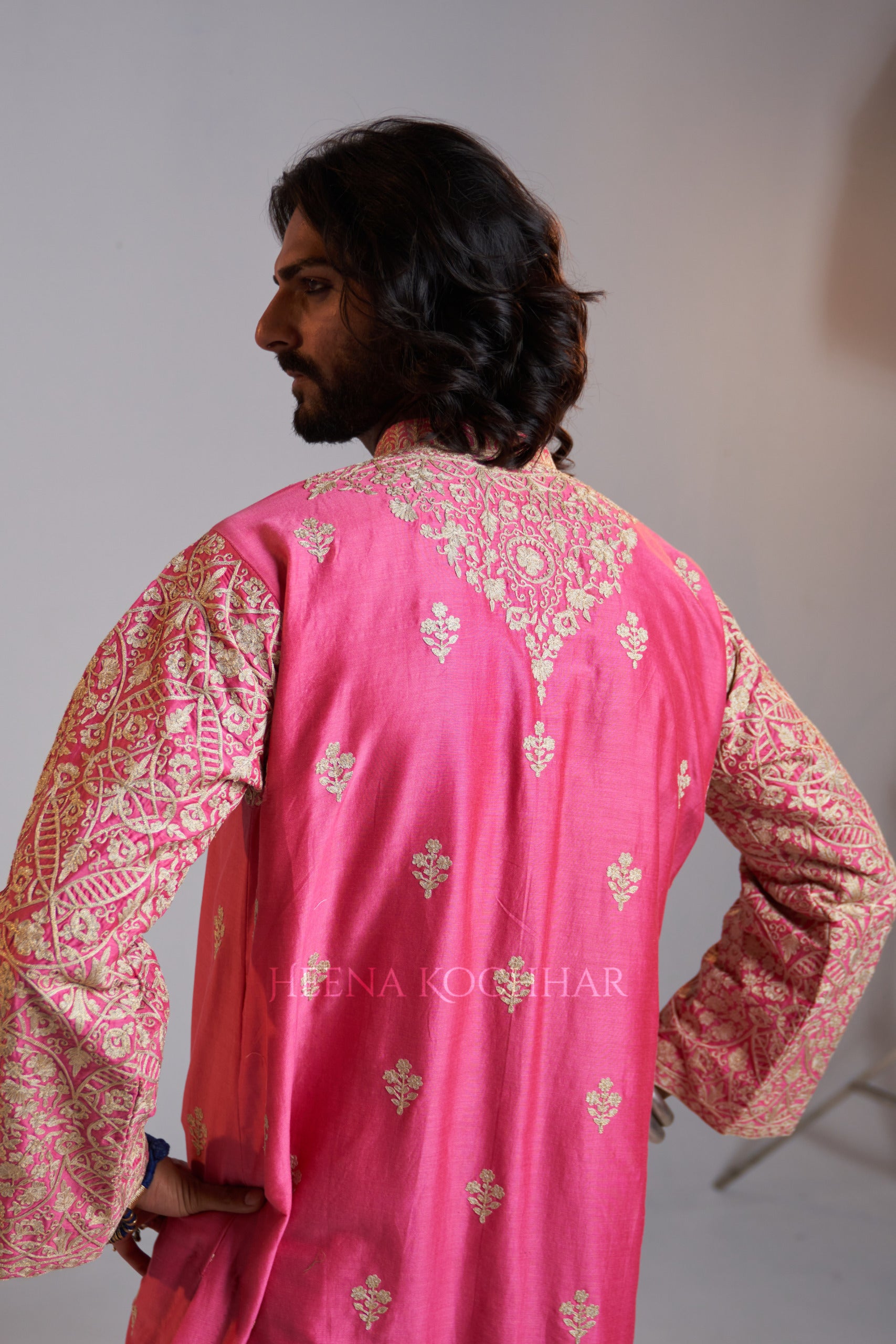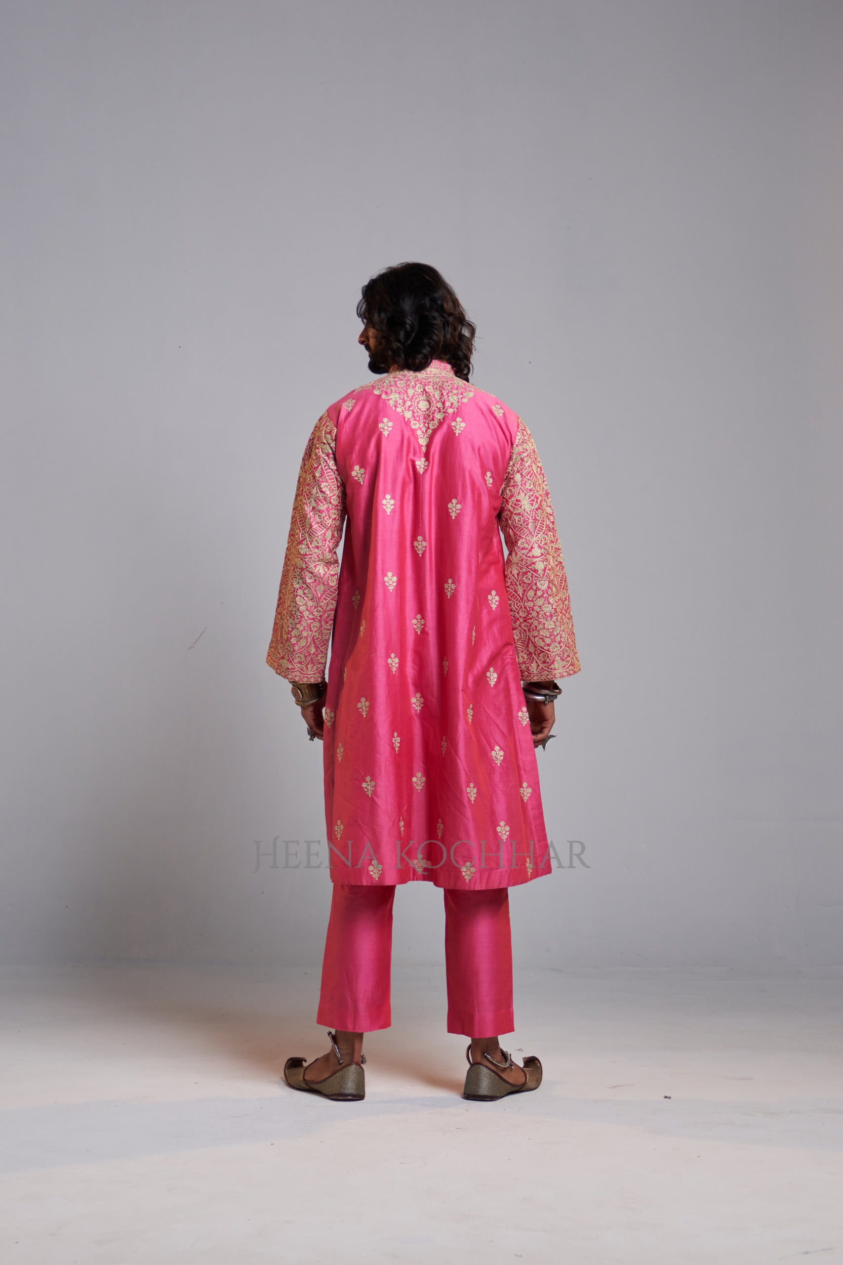 KURTA: Pink Chanderi Choga Kurta