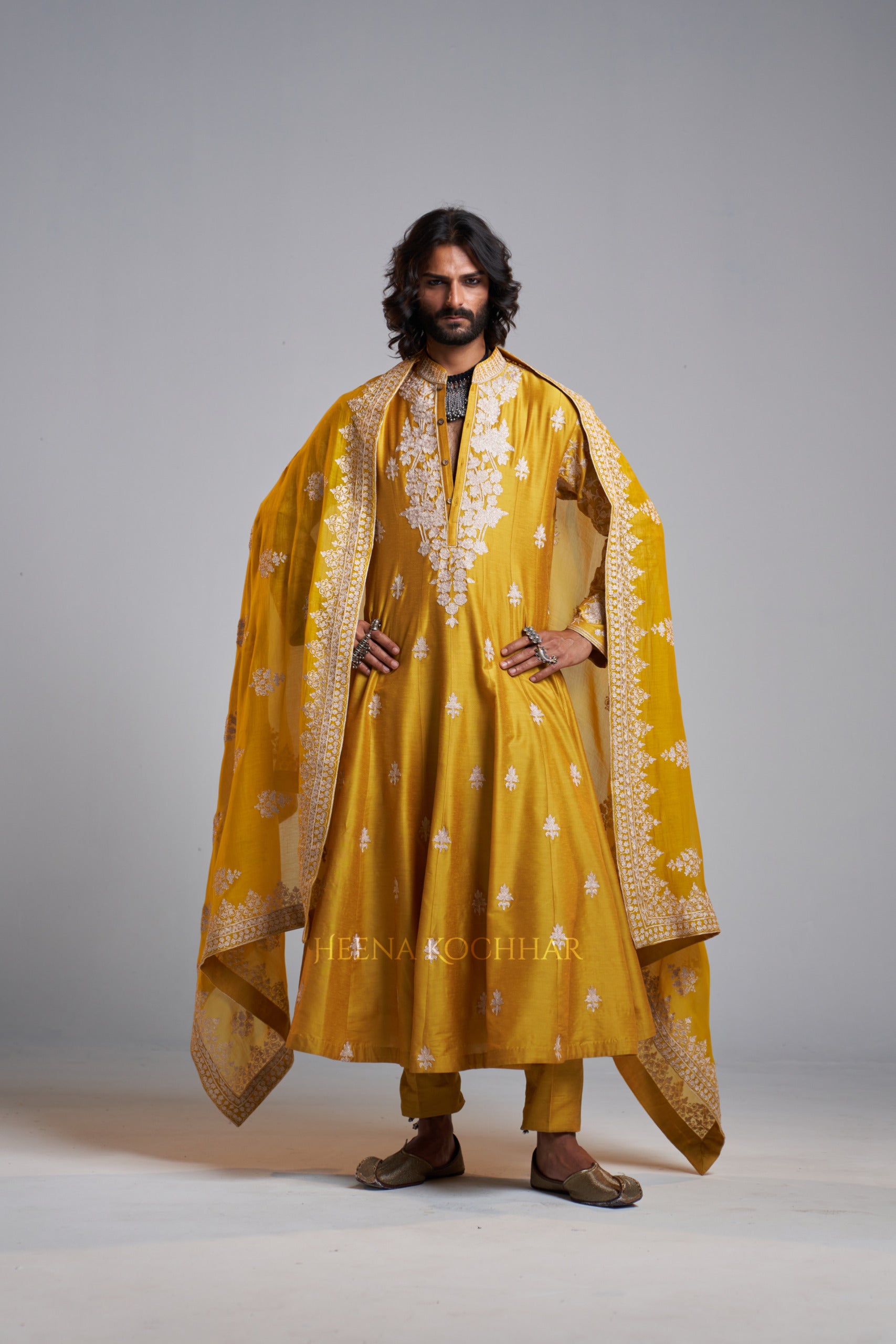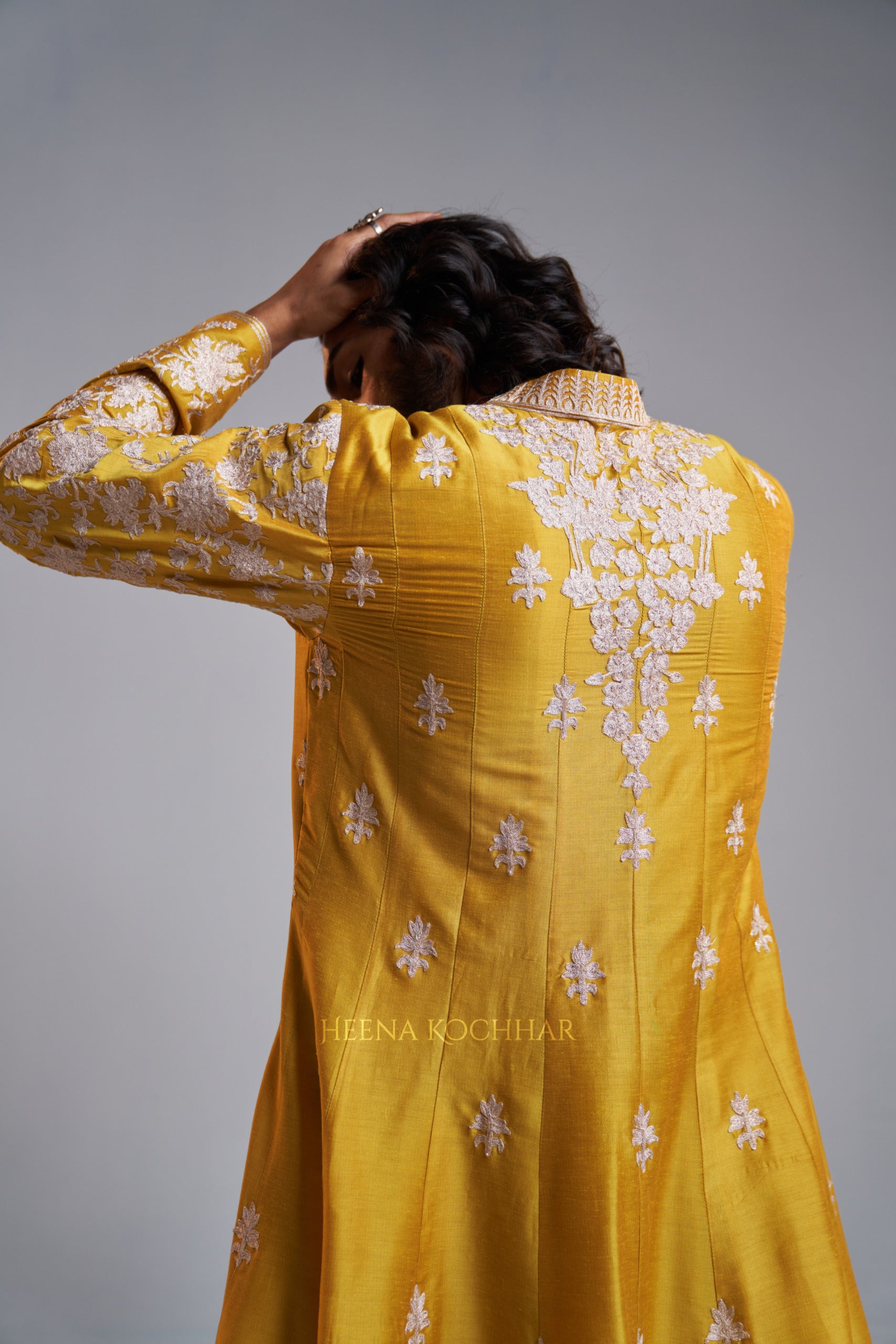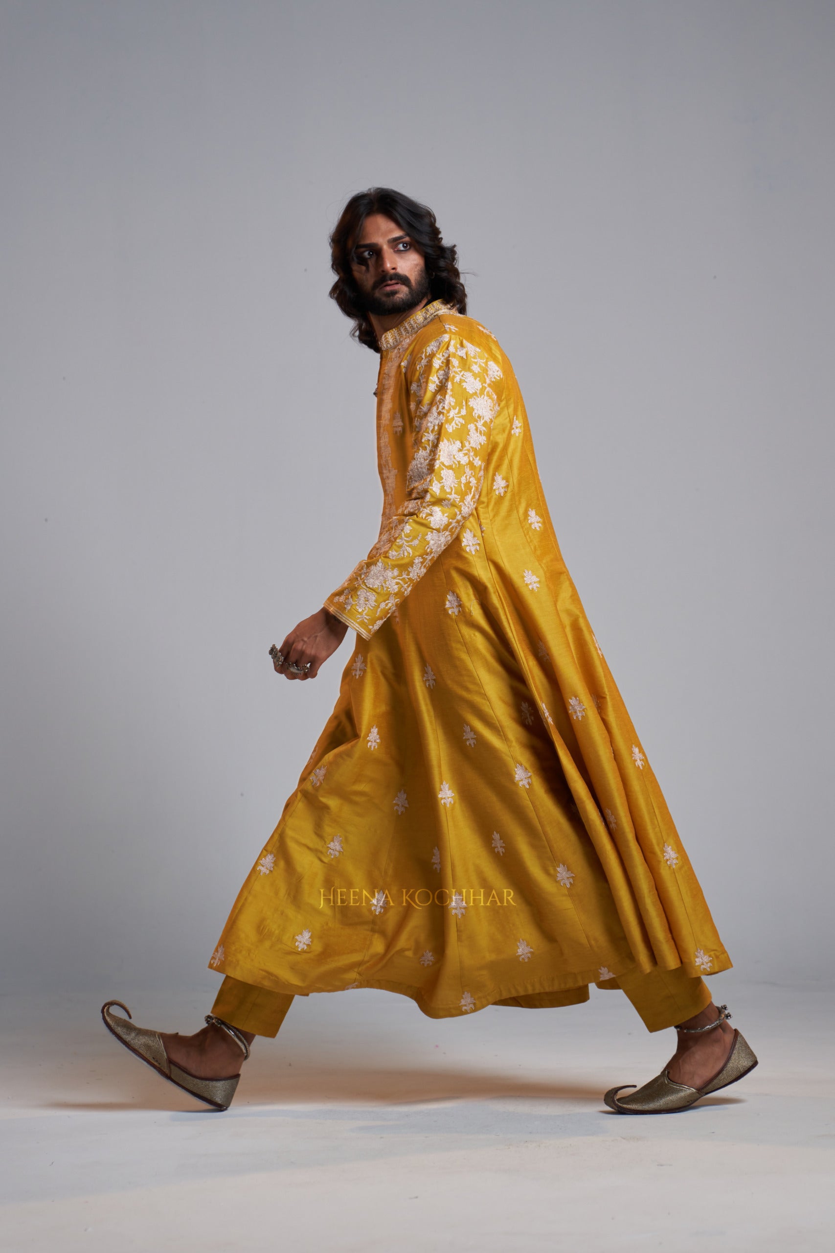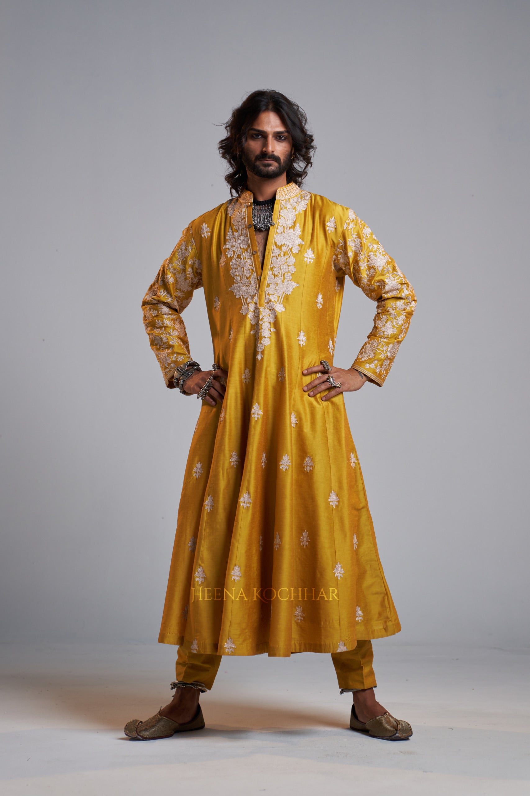 KURTA: Yellow Chanderi Kali Kurta
