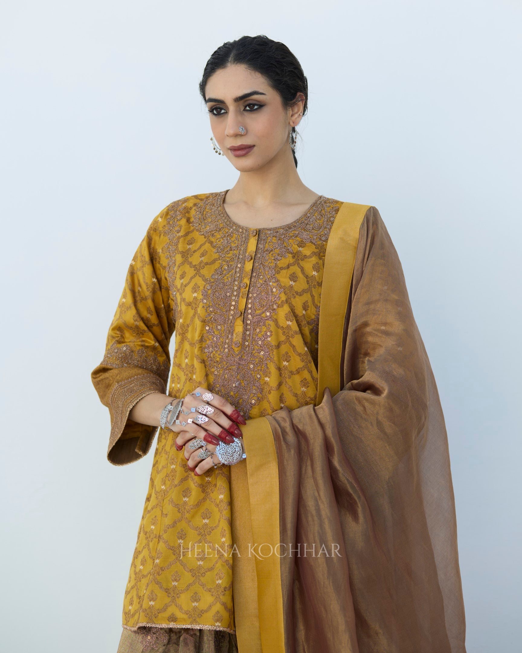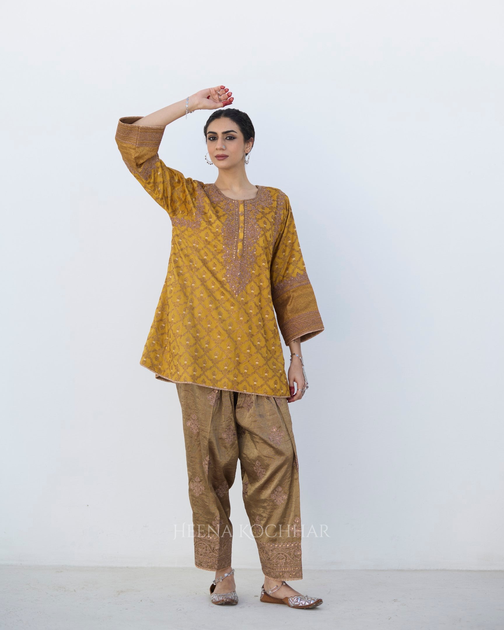Bottom- Gold Tissue Salwar
