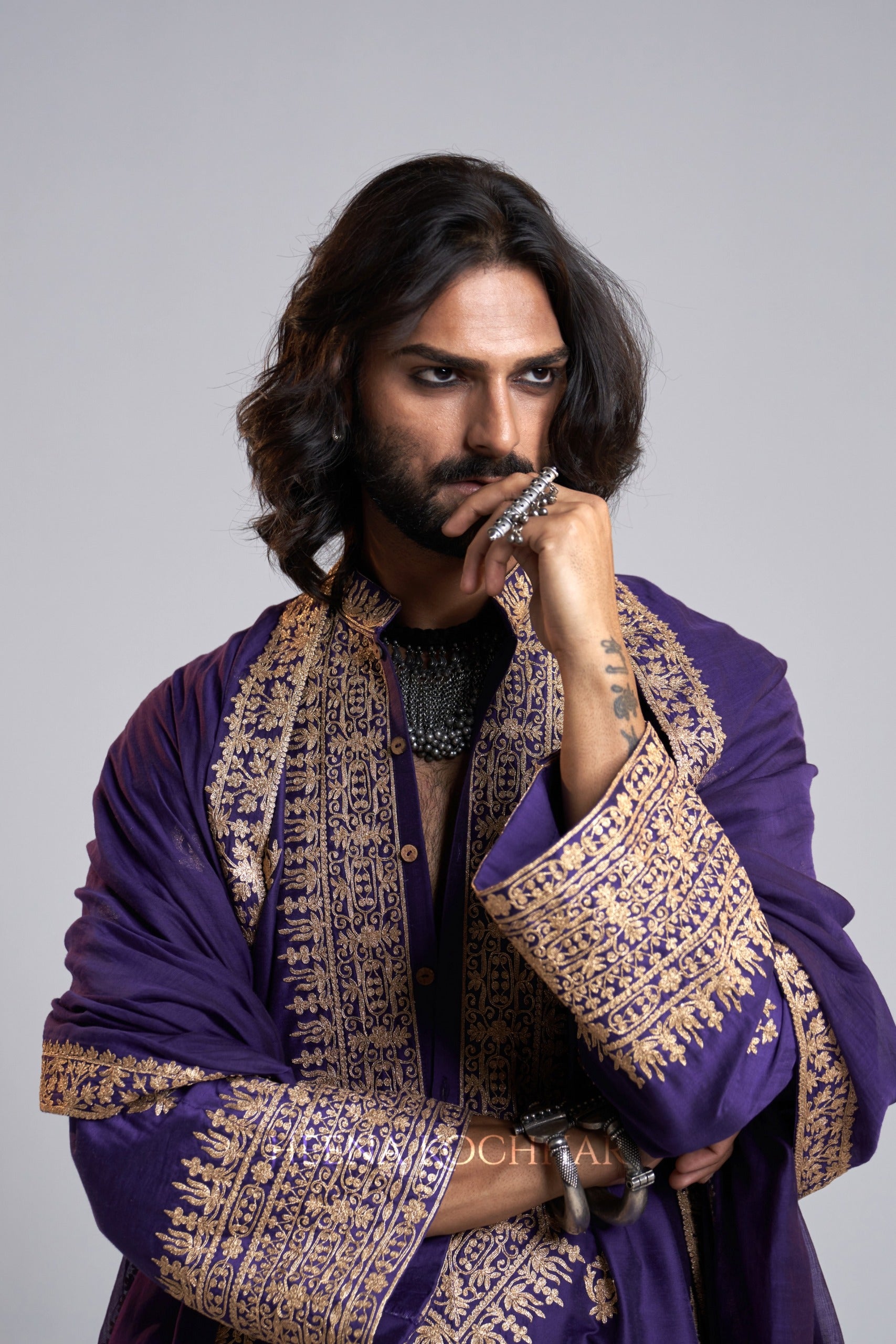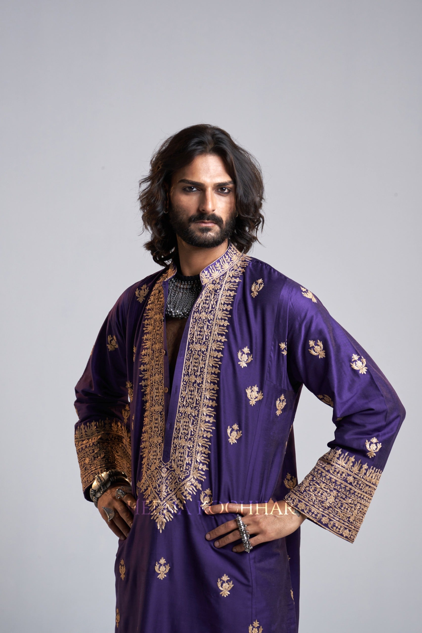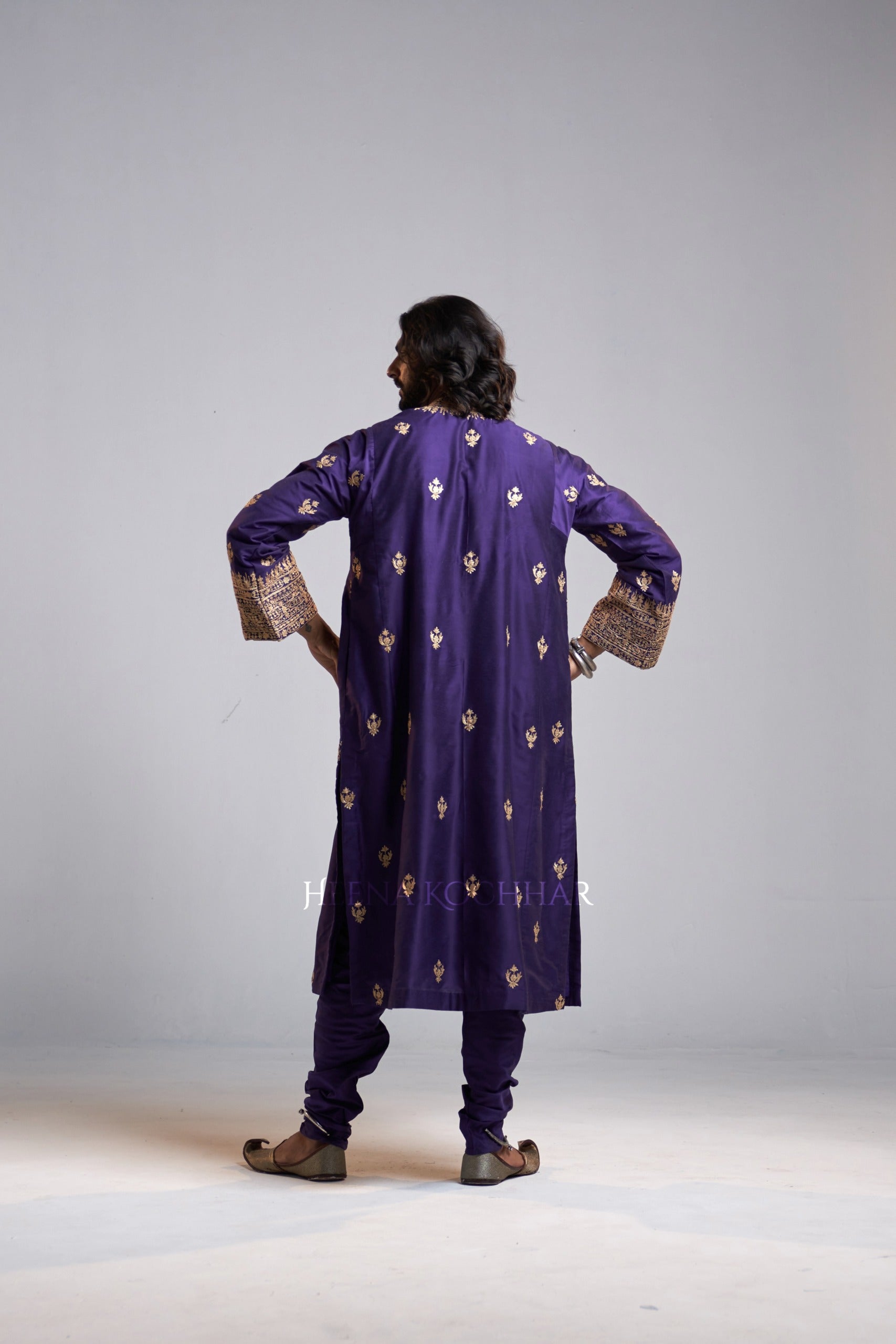 KURTA: Purple Kataan Choga Kurta