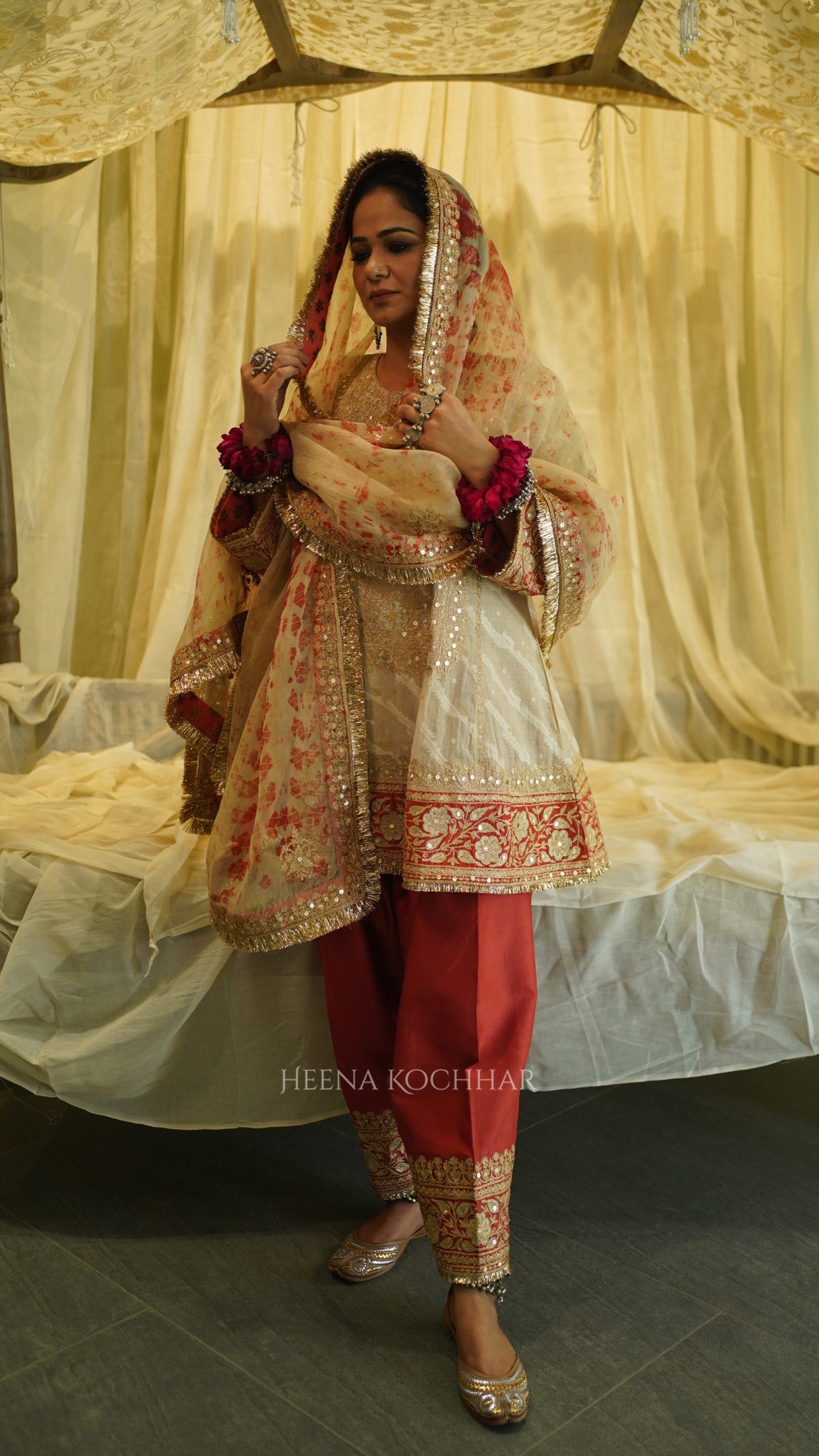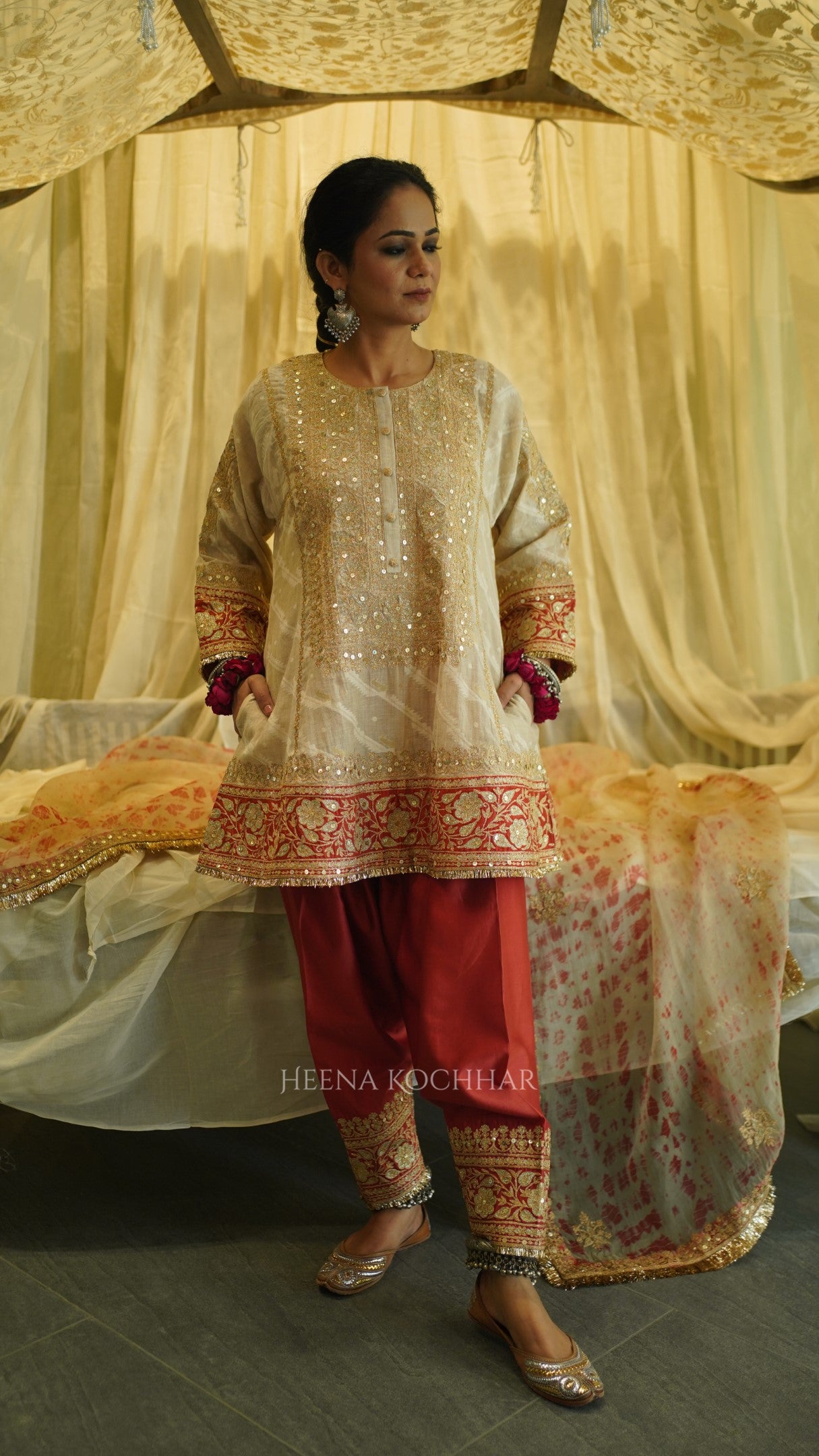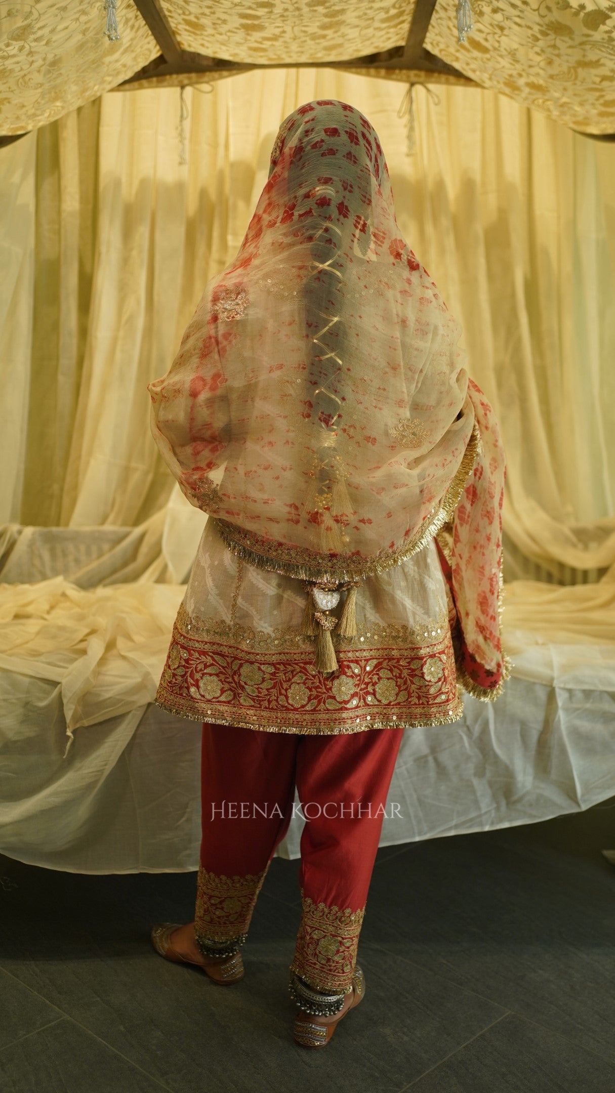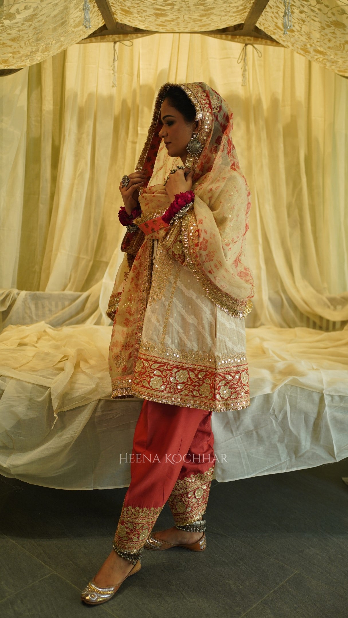 Kurta- SoftBeige Jamdani Chanderi Choga