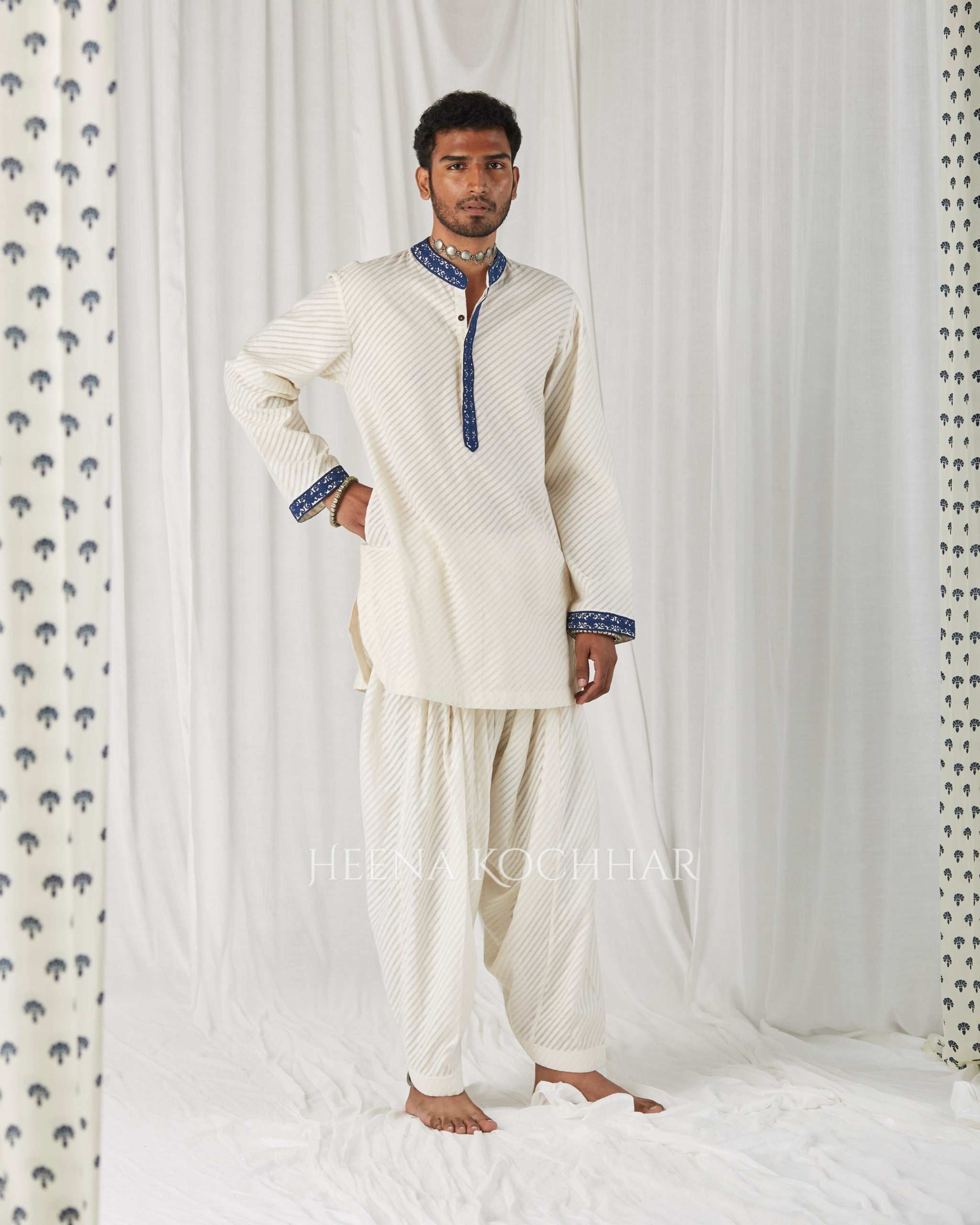KURTA: Cream Handloom Chanderi (Comfort Fit Kurta)