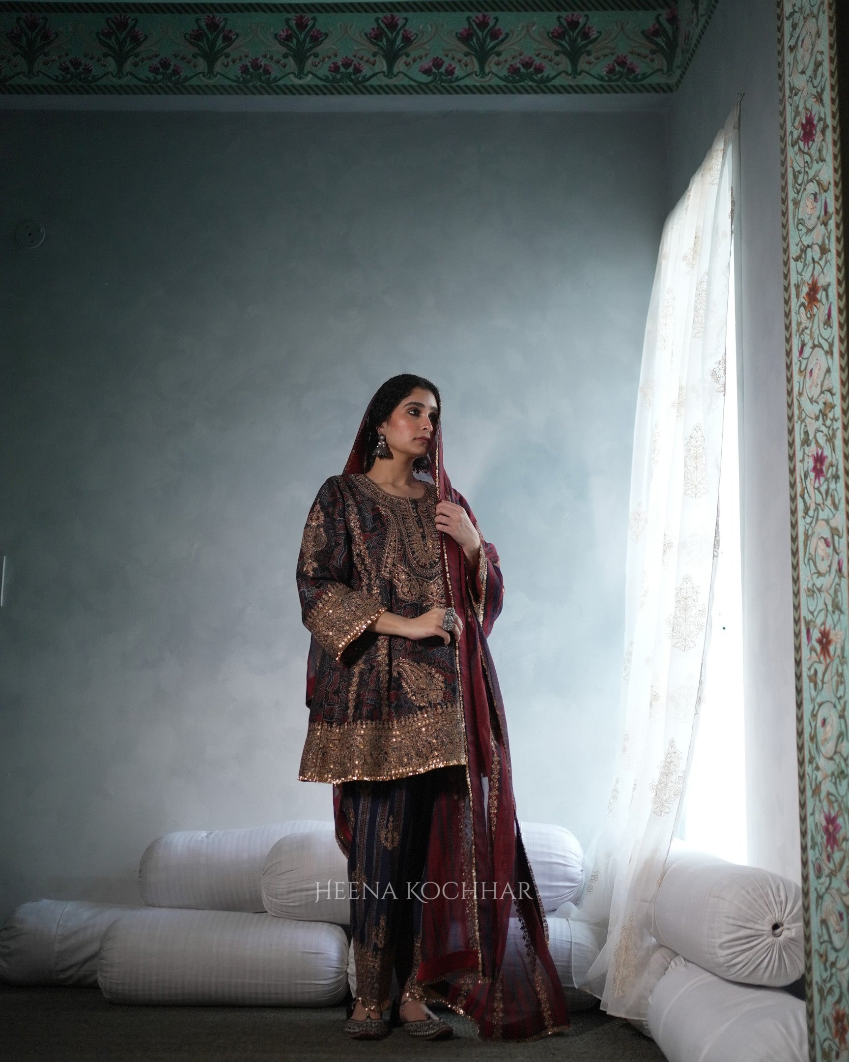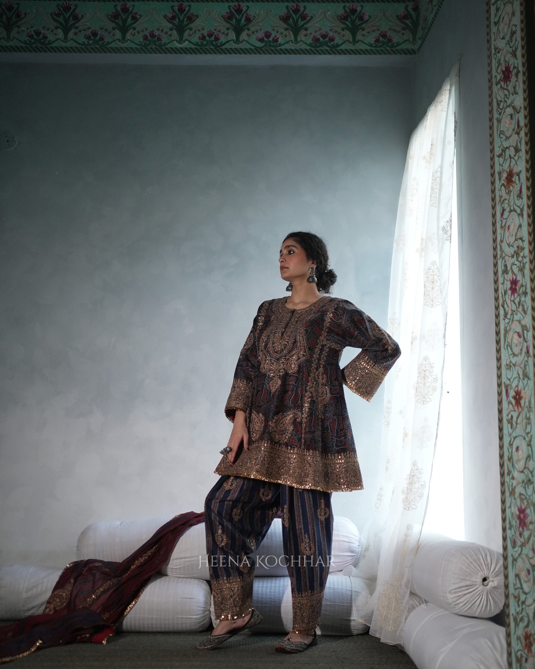 BOTTOM - Maroon and Blue Ajrakh Chanderi Salwar
