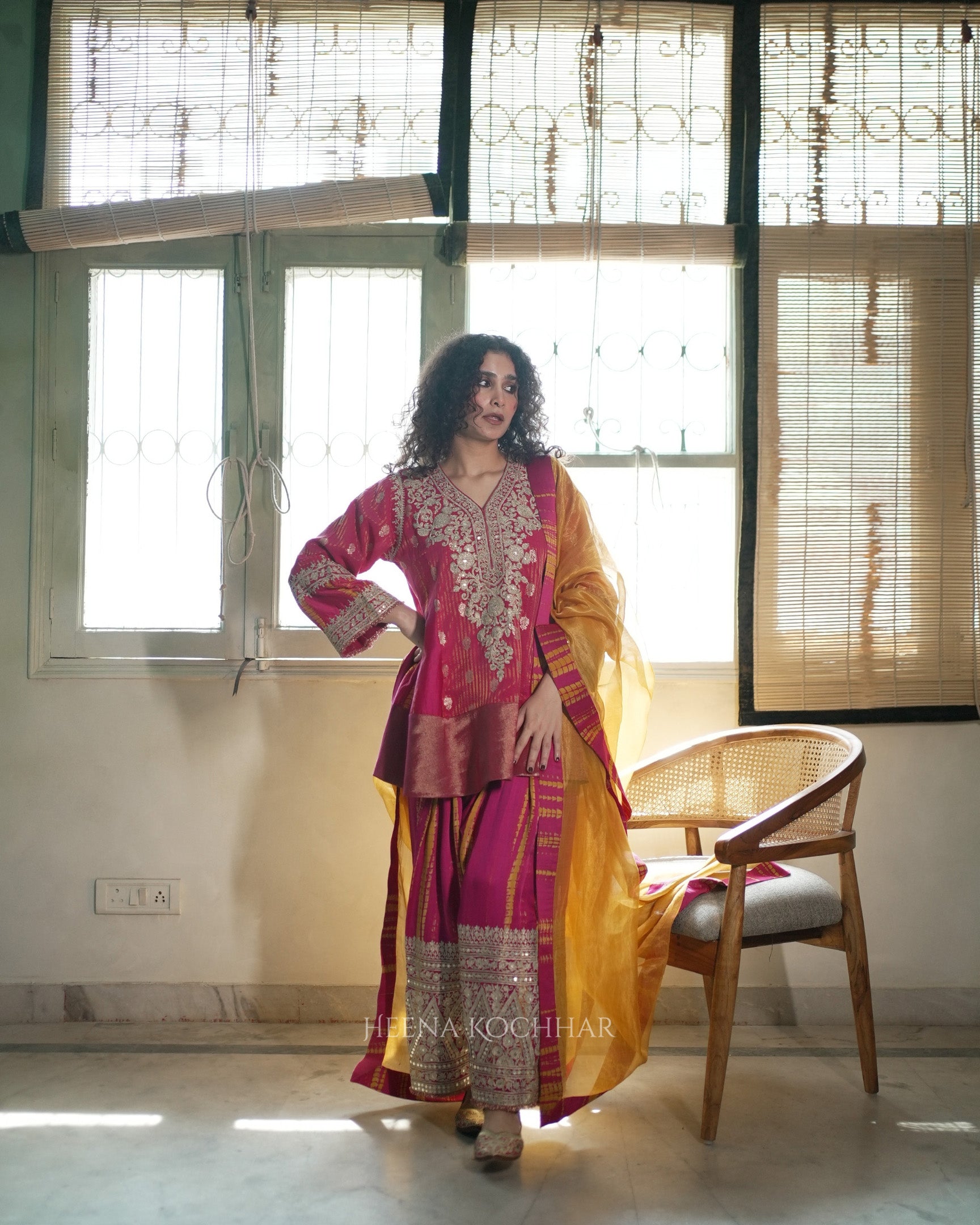 KURTA - Rani Weave Tissue and Tie - Dye Chanderi Choga