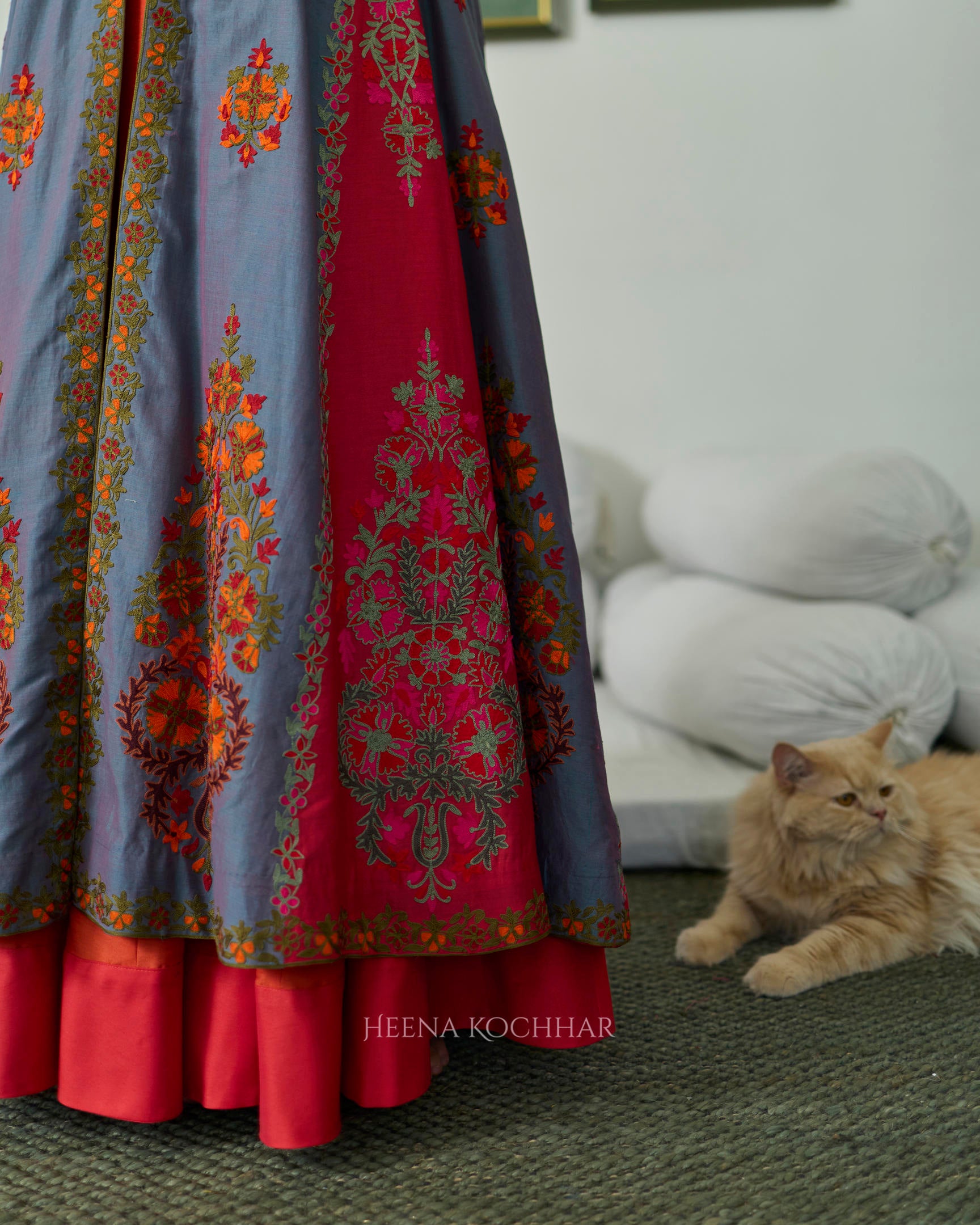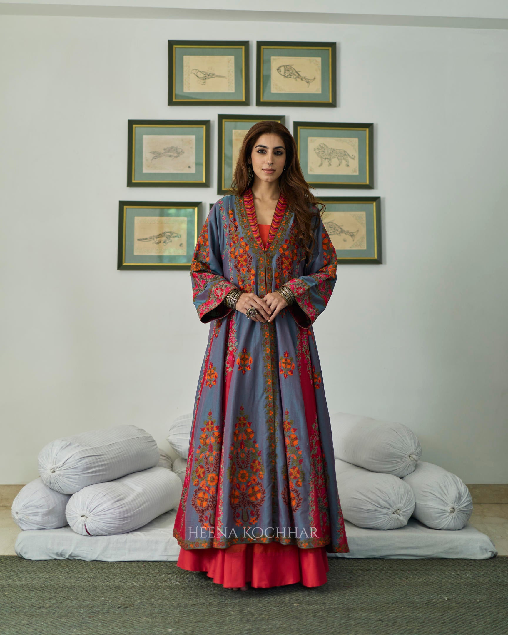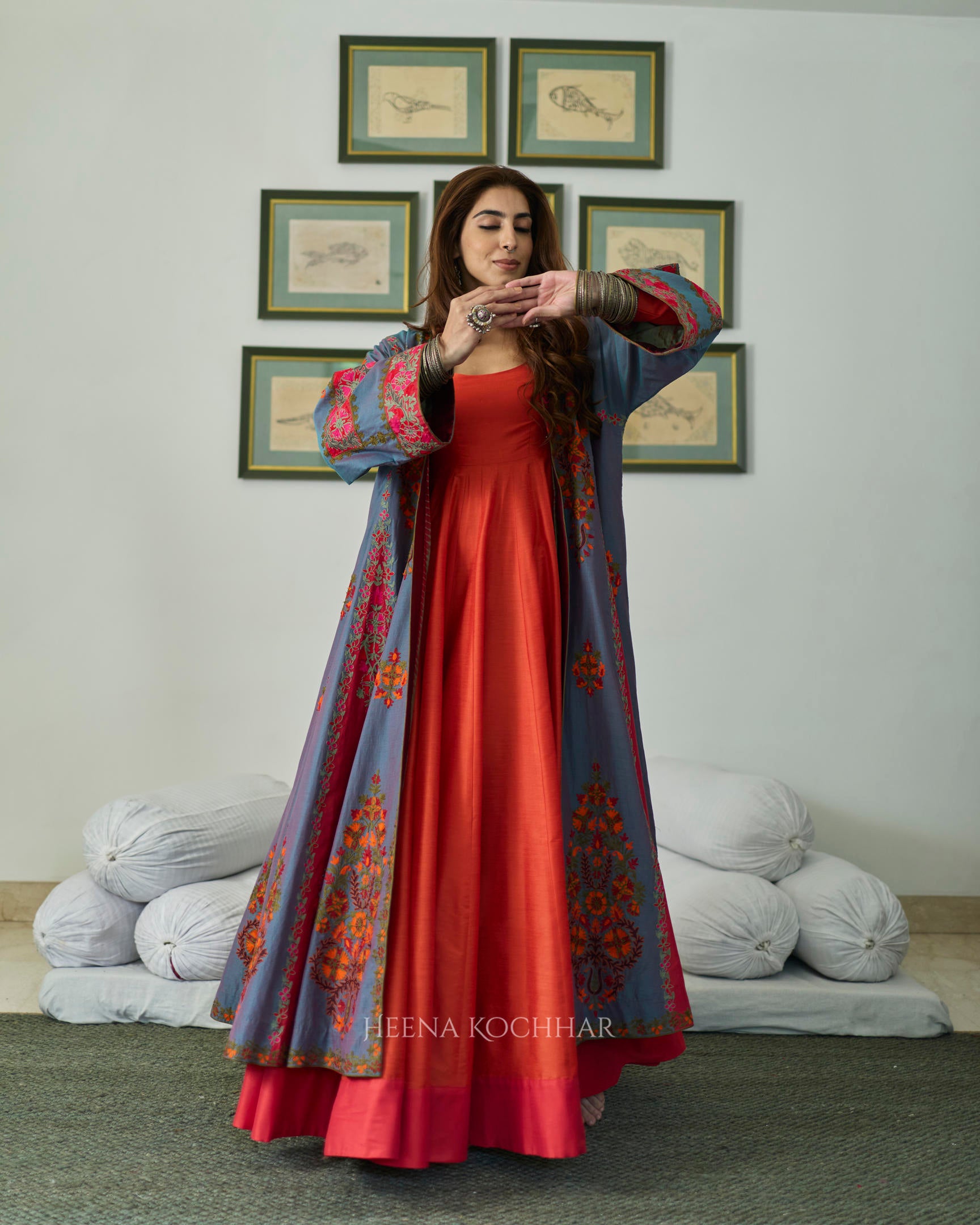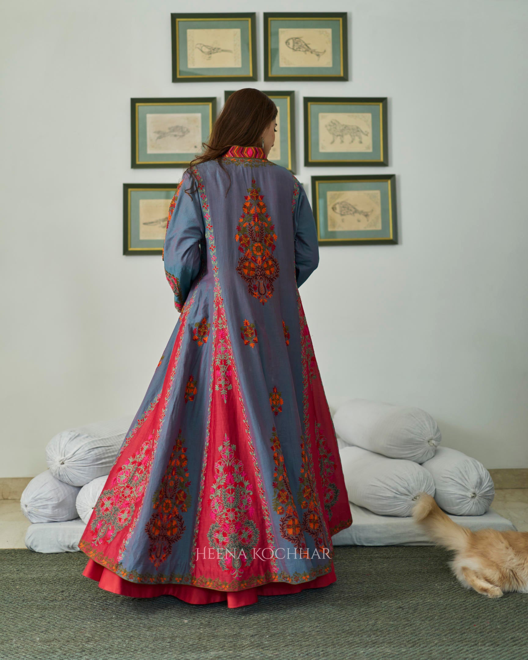 Jacket - Soft Teal And Pink Chanderi Kalidaar