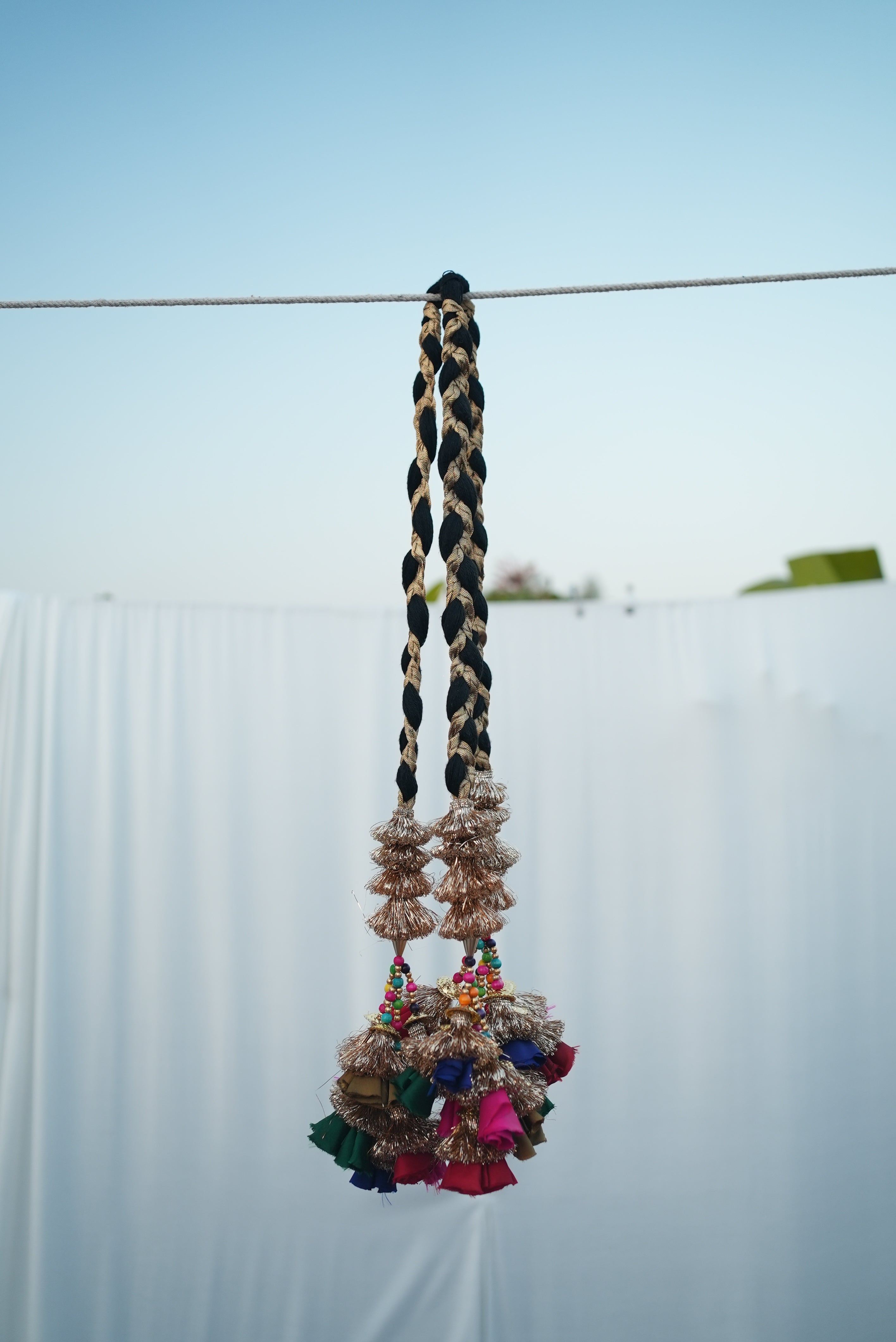 .PARANDI - Long Bunch Of Thread with Elaborate Decorative Tassel at the Lower end,and are used as Hair Accessories to Braid Long Hair. DELIVERY: 16-21 Days