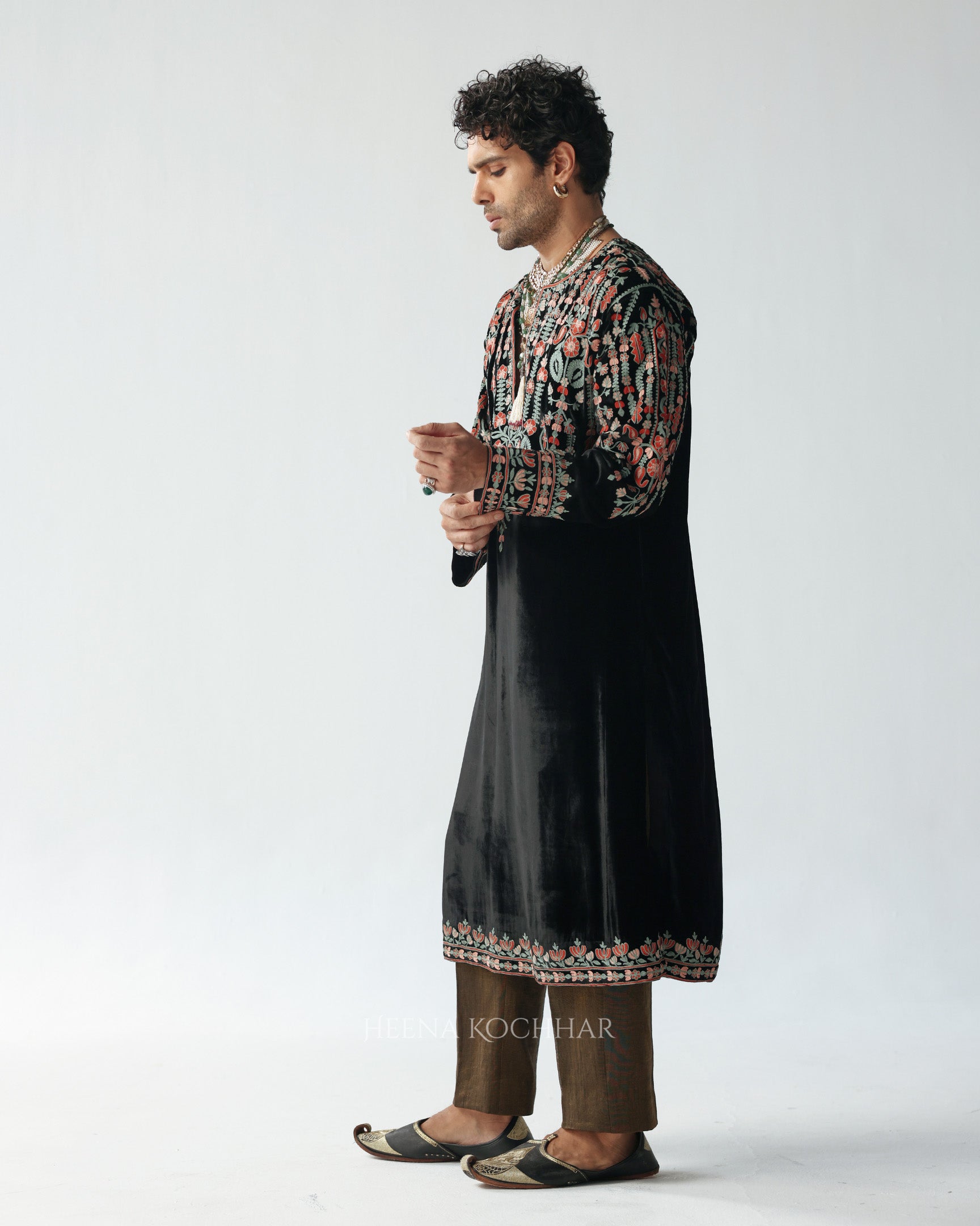 KURTA - Black Silk Velvet Choga