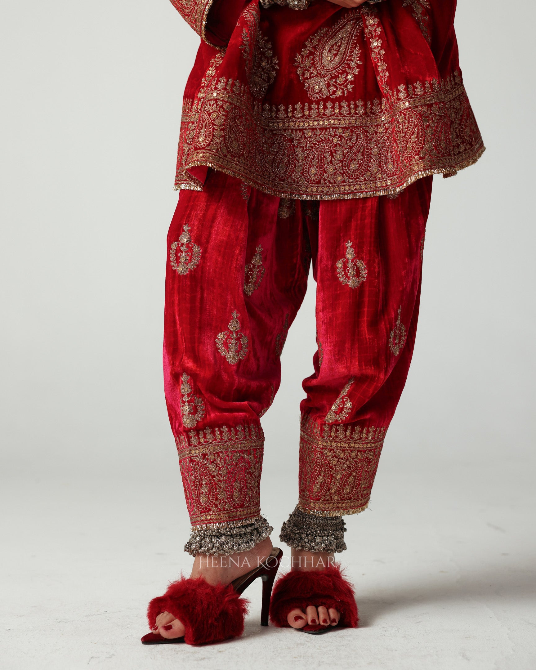 BOTTOM - Red Rani Tie Dye Silk Velvet Salwar