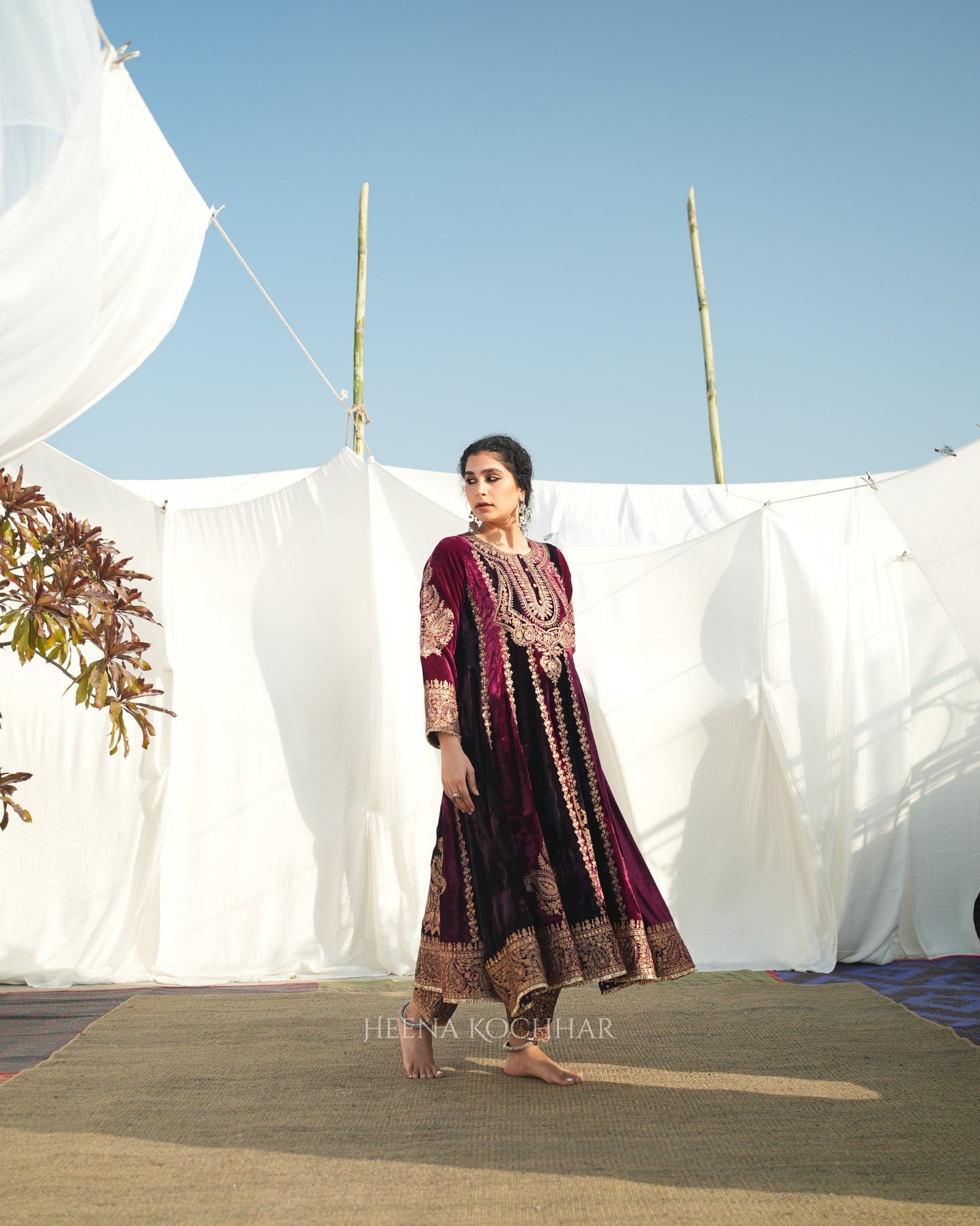 KURTA - Pink-Purple Silk Velvet Anarkali