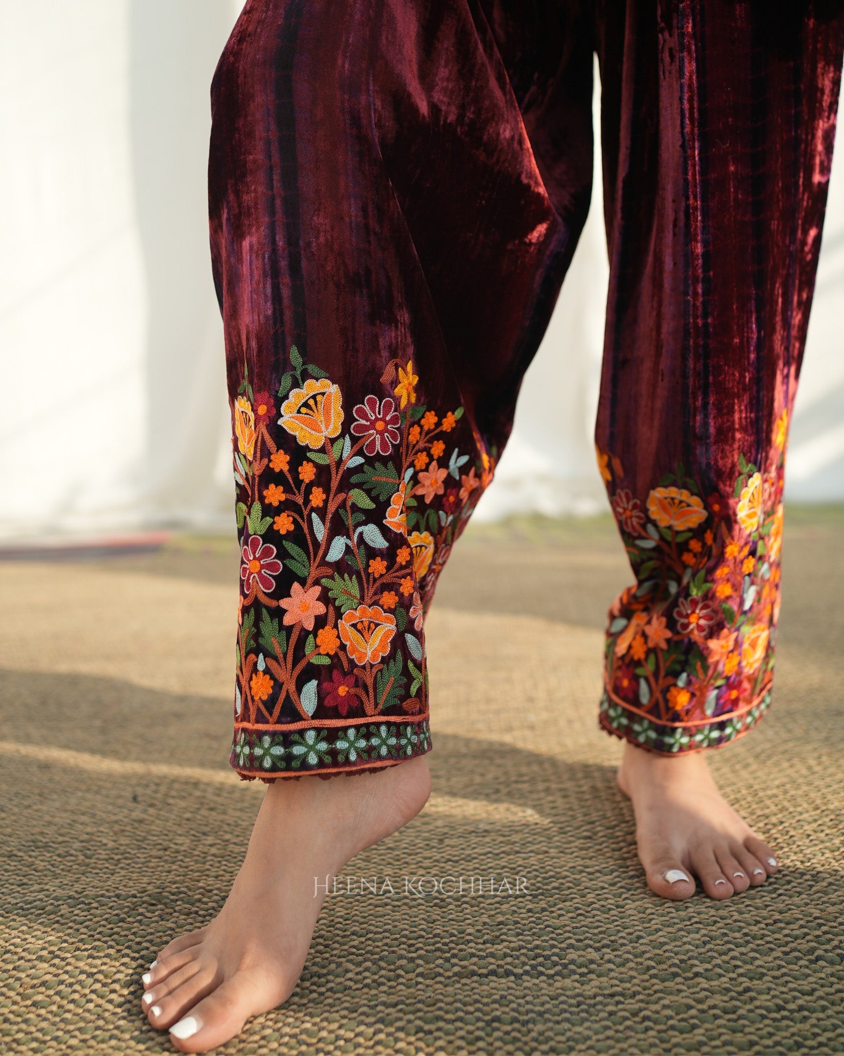 BOTTOM - Maroon-Purple Tie-Dye Silk Velvet Salwar