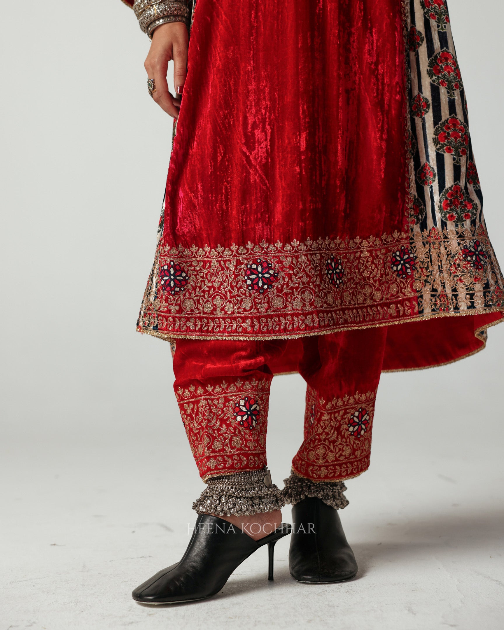 BOTTOM - Red Silk Velvet Salwar