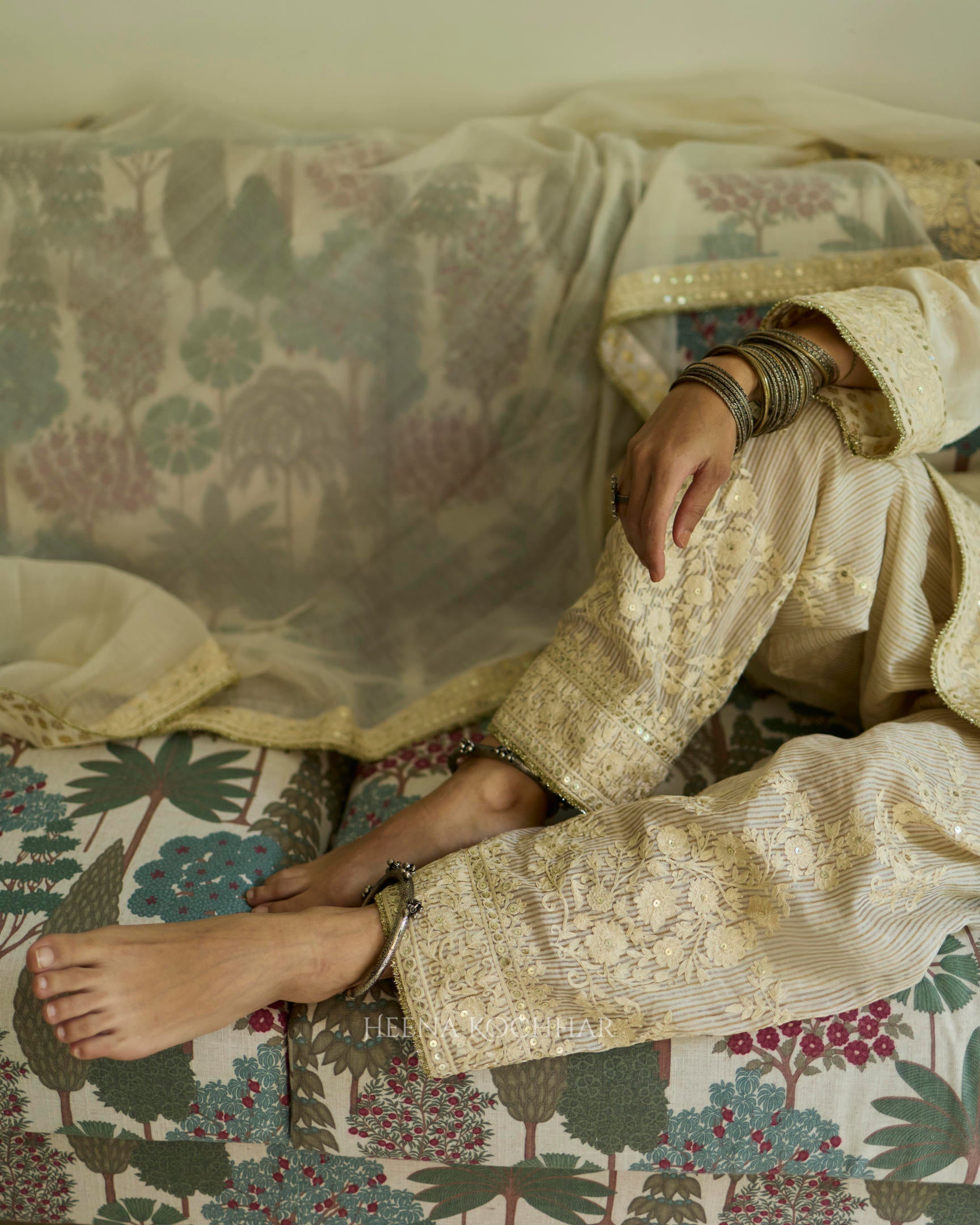Bottom - Cream Weave Tissue Salwar