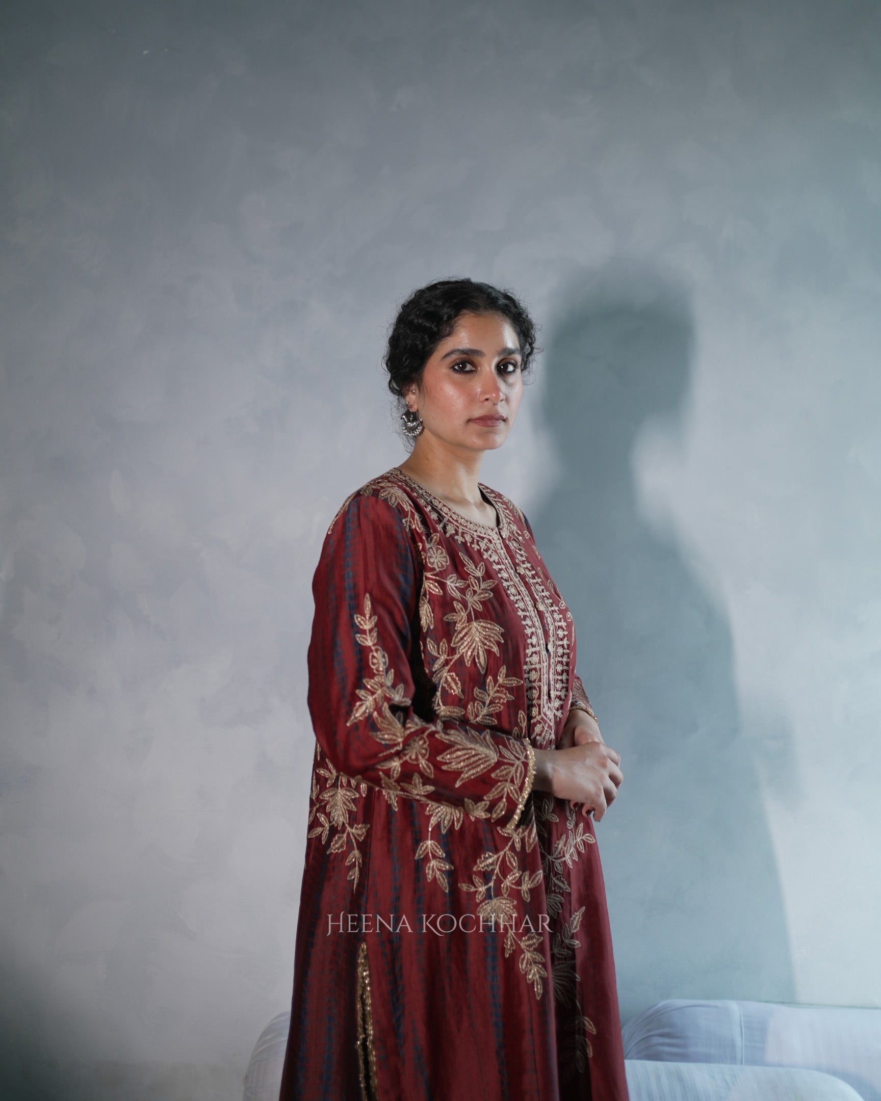 Bottom - Maroon And Black Stripe Silk Linen Salwar