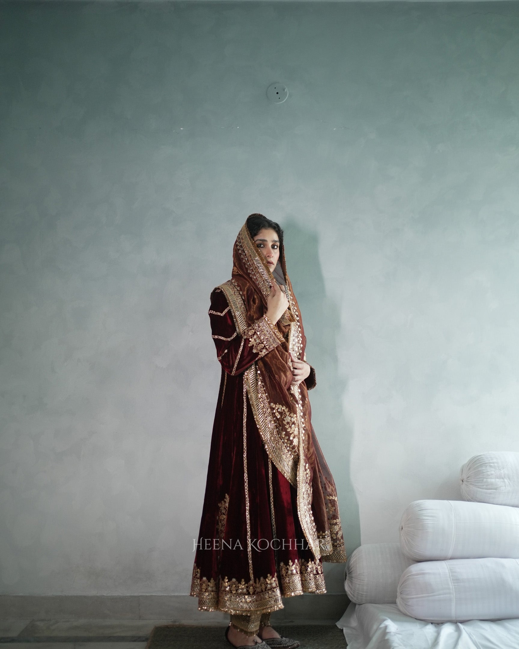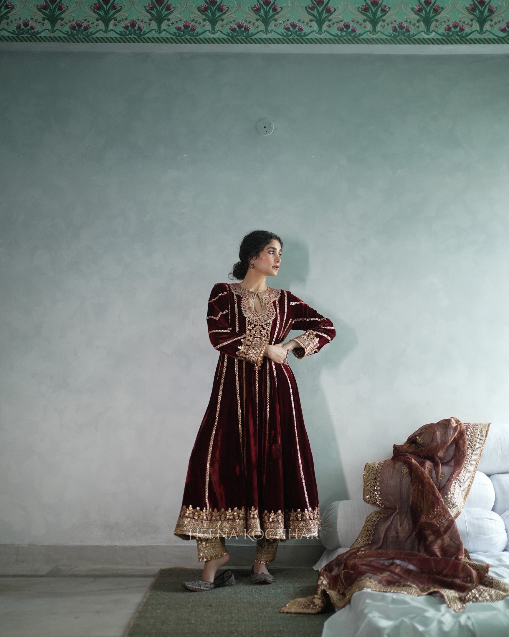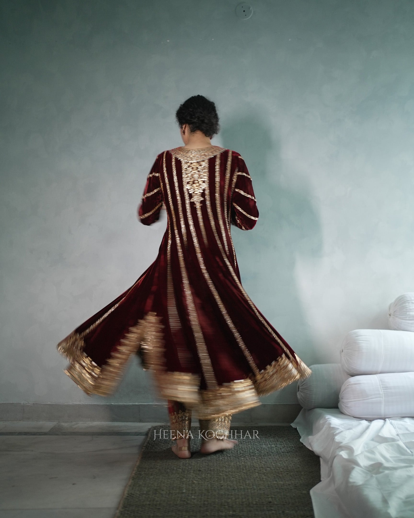 Kurta - Maroon Silk Velvet Anarkali