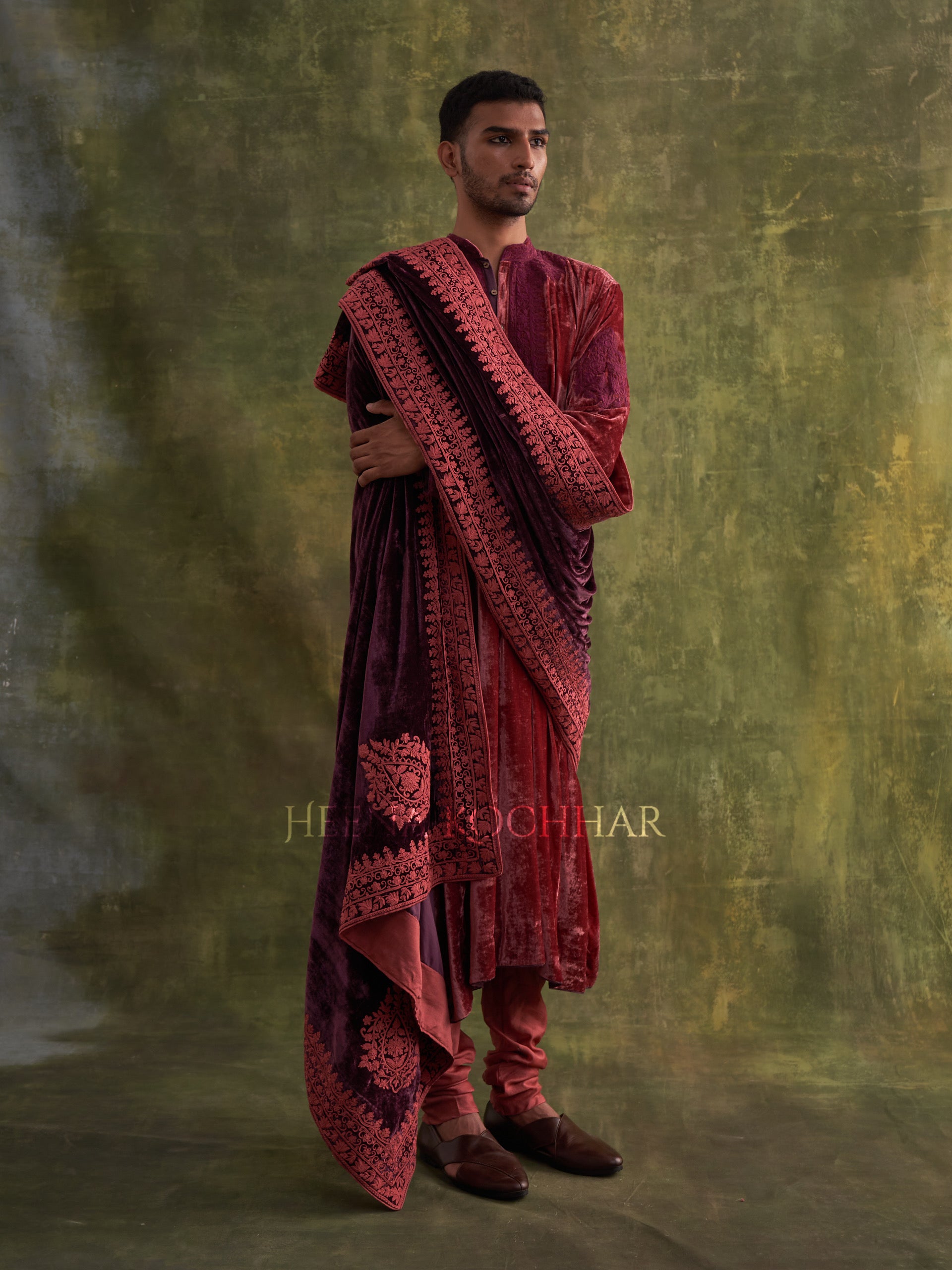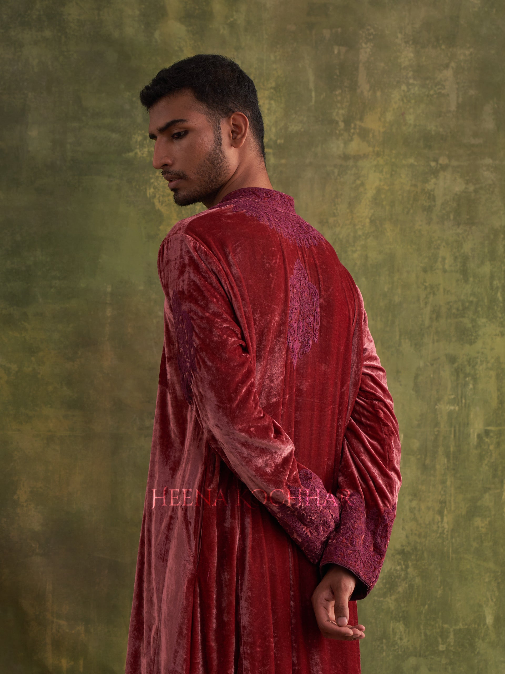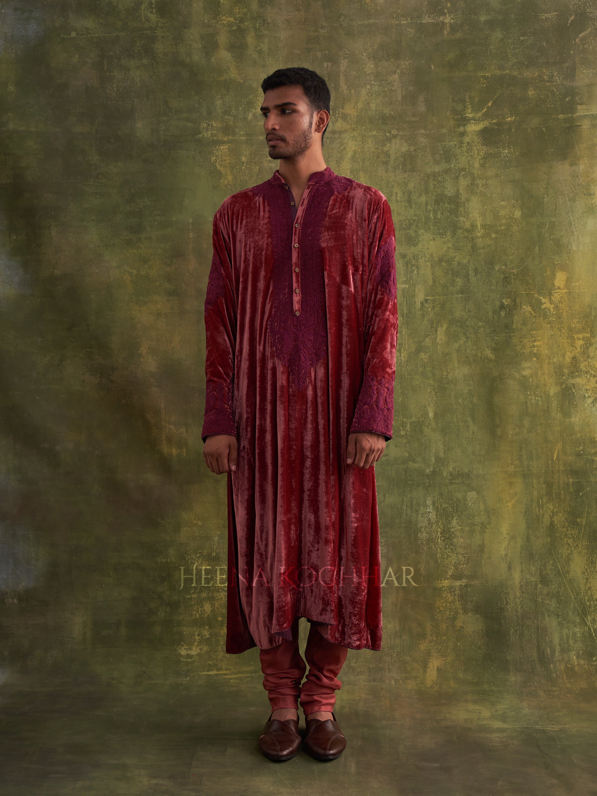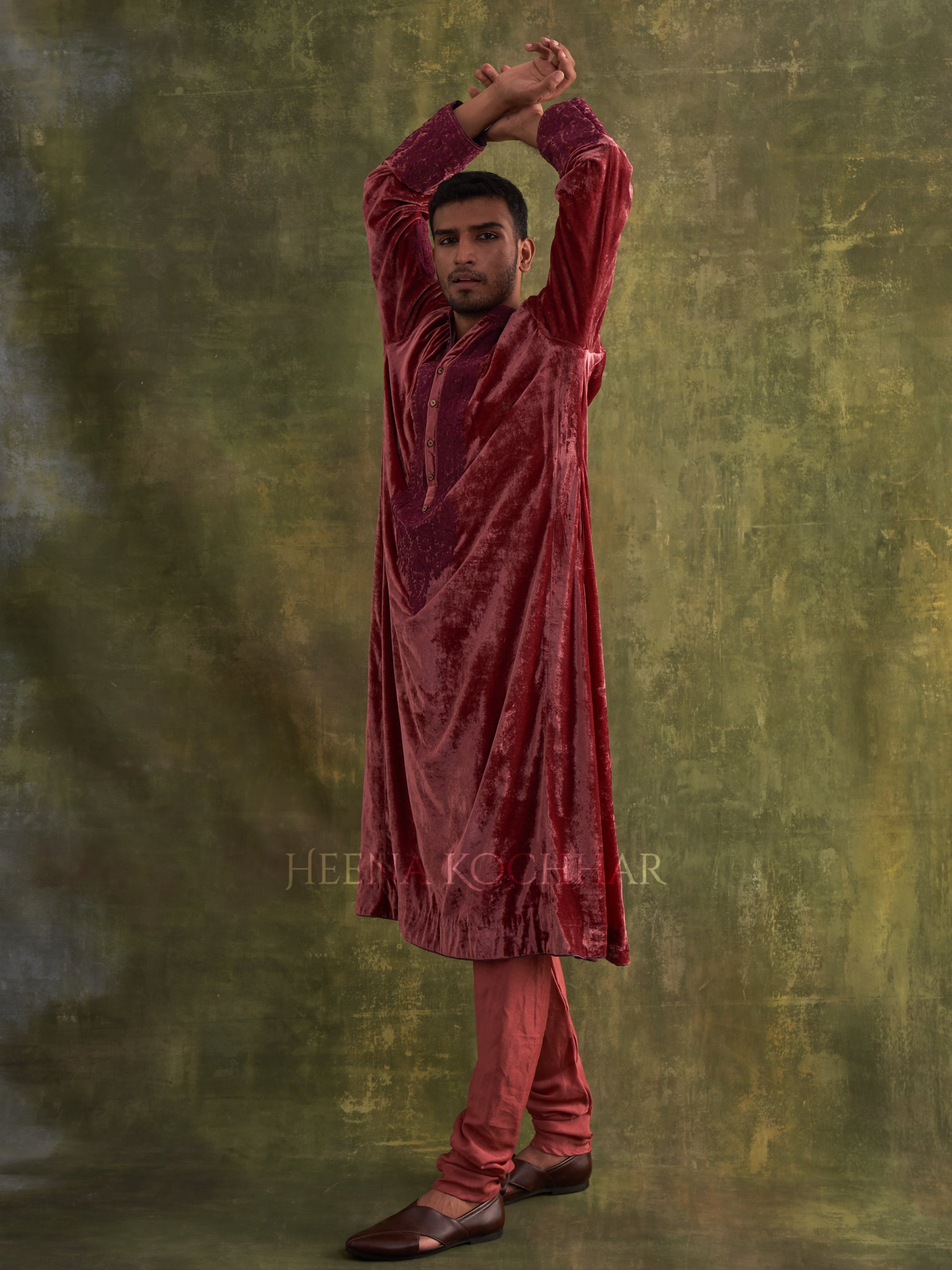 KURTA: Rose Pink Velvet (Comfort Fit Choga Kurta)