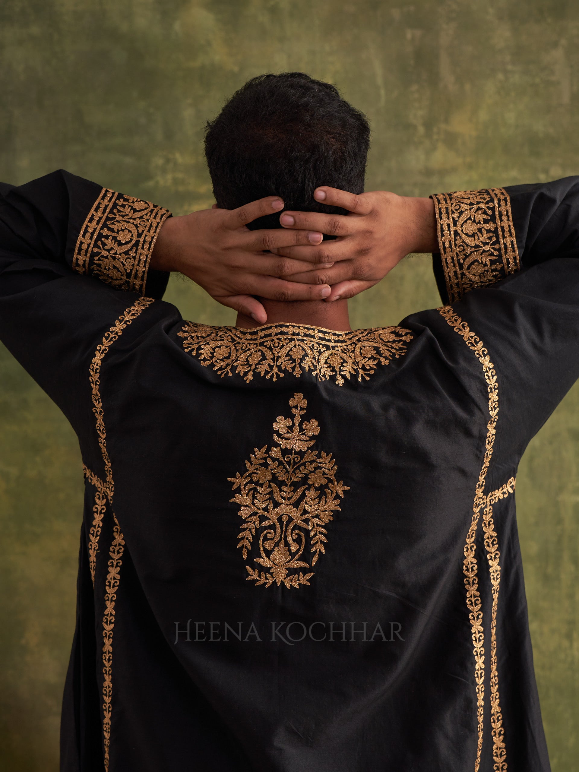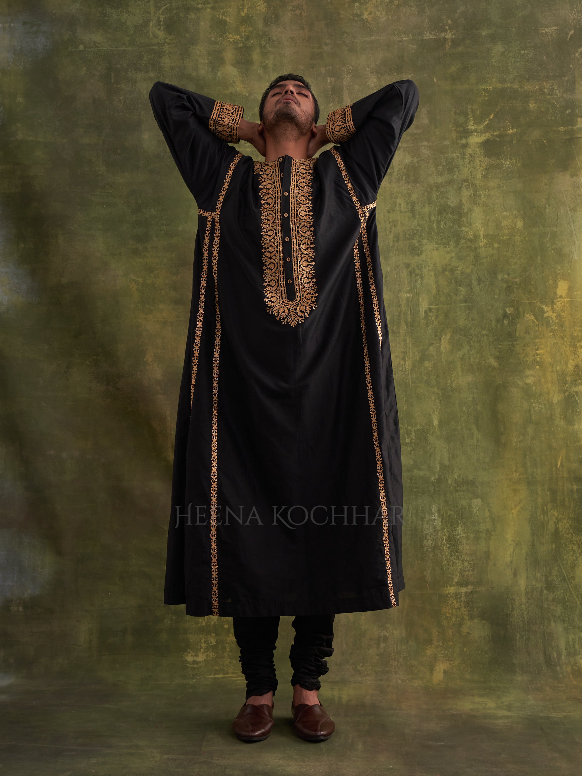 KURTA: Black Chanderi (Comfort Fit Kurta Choga)