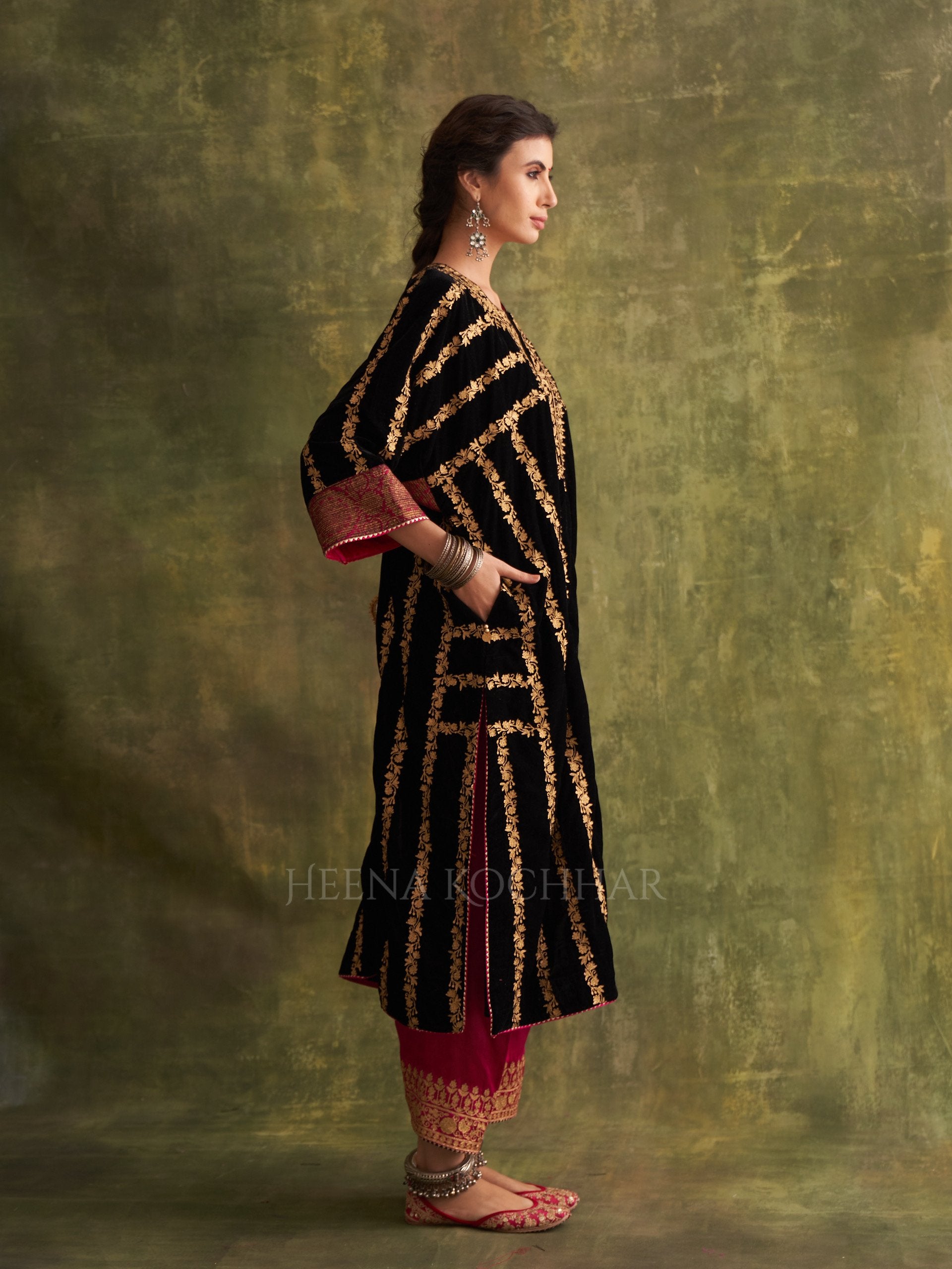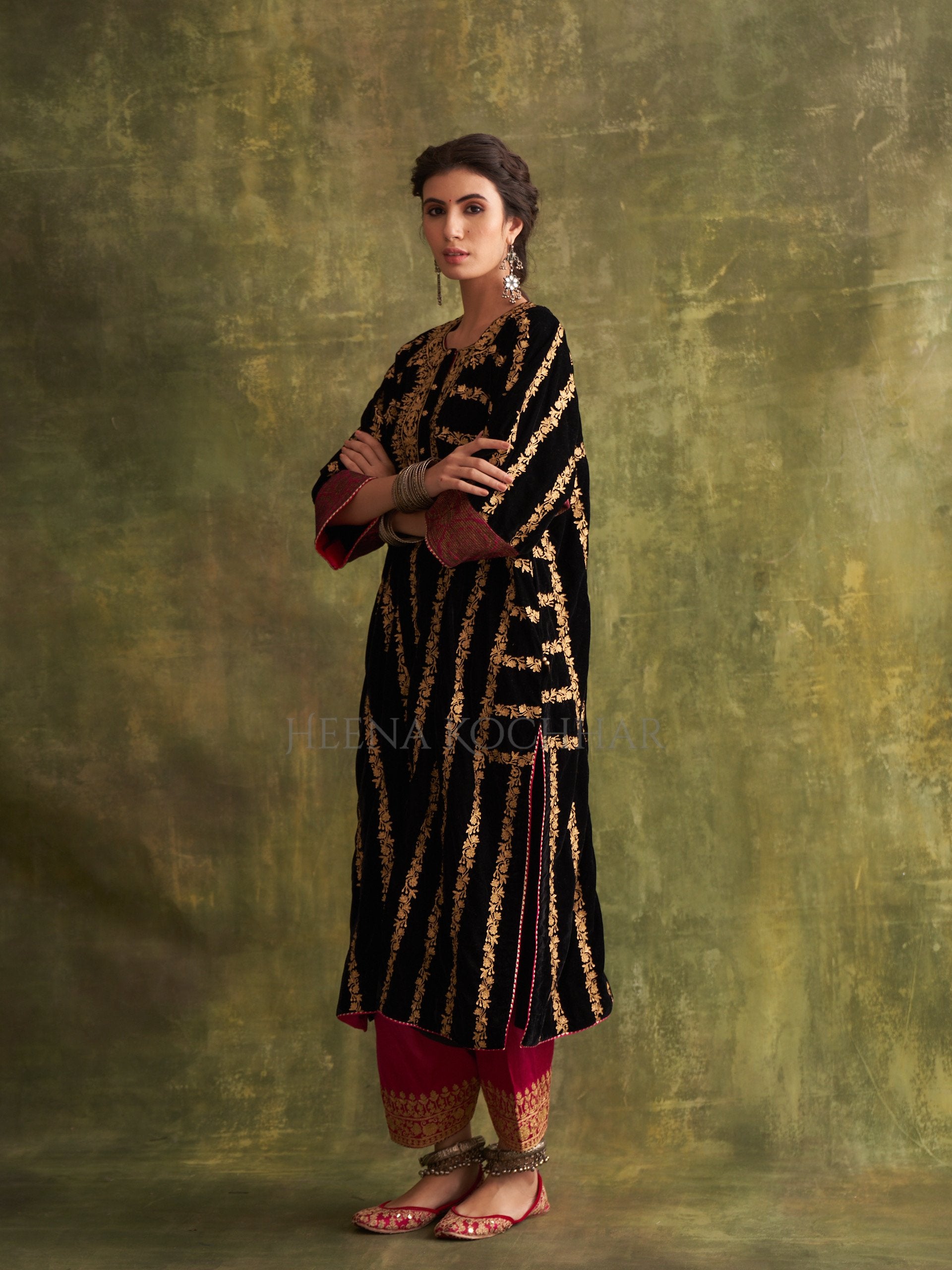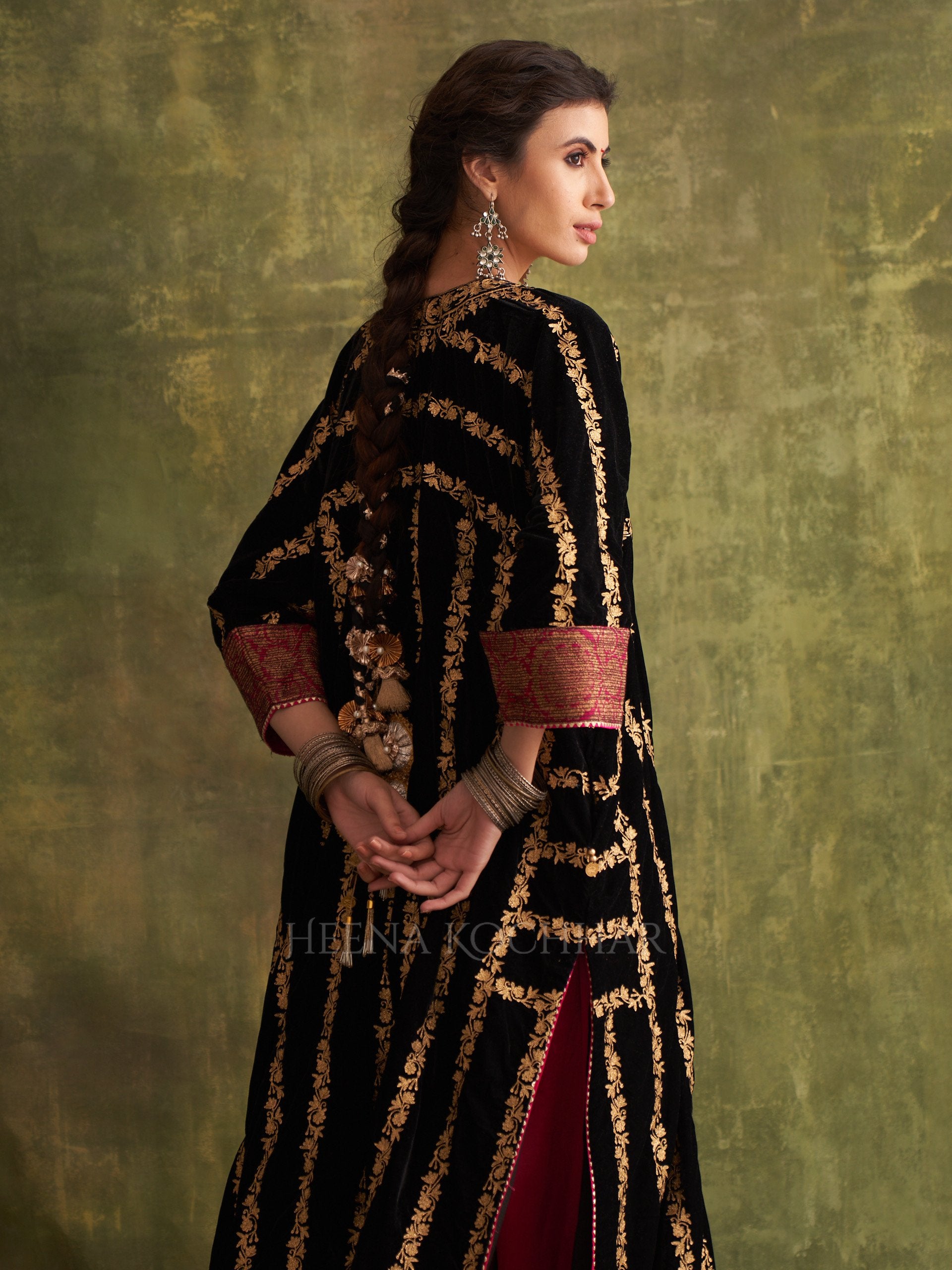 KURTA: Black Velvet Choga