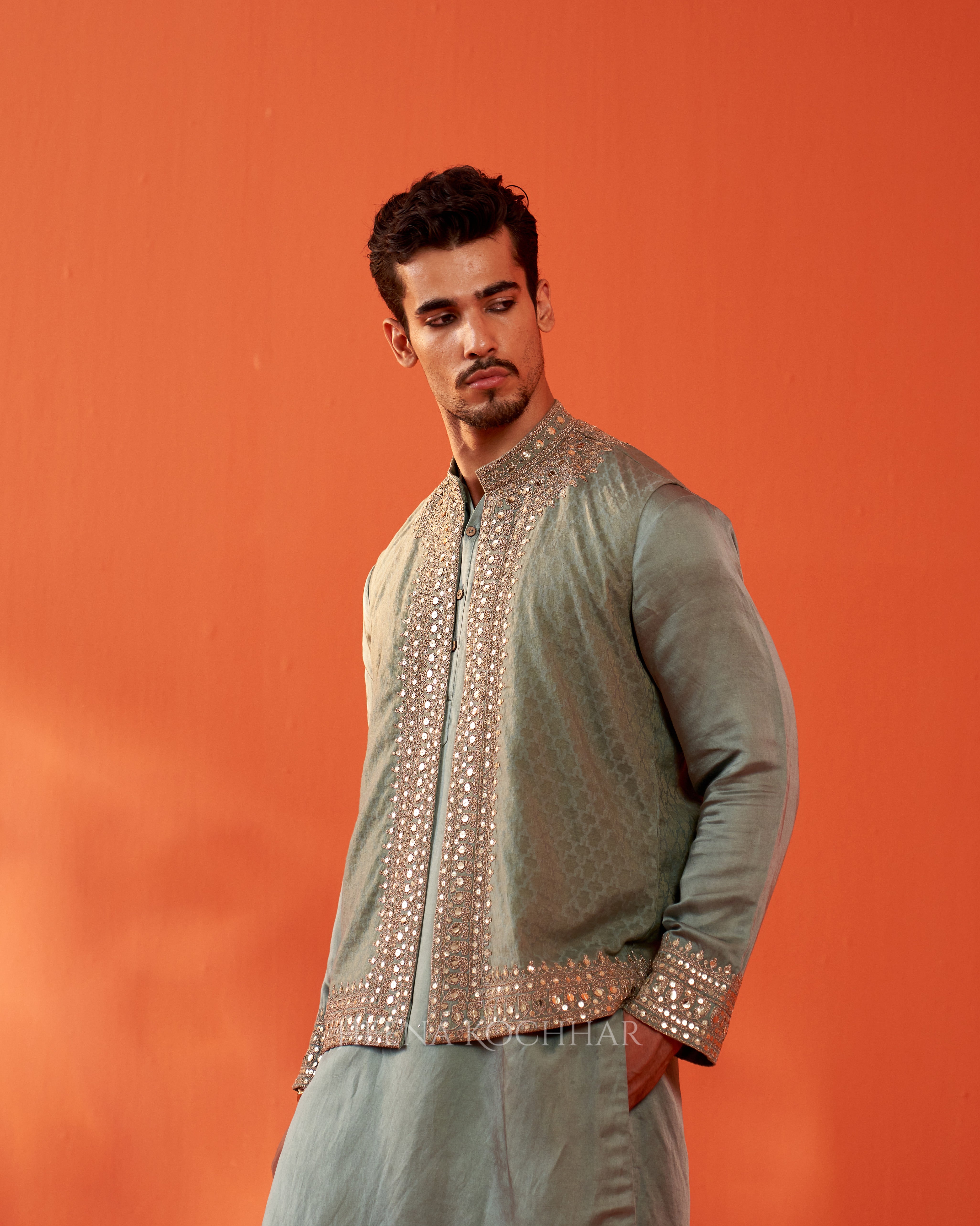 Jacket - Soft Aqua Handloom Chanderi