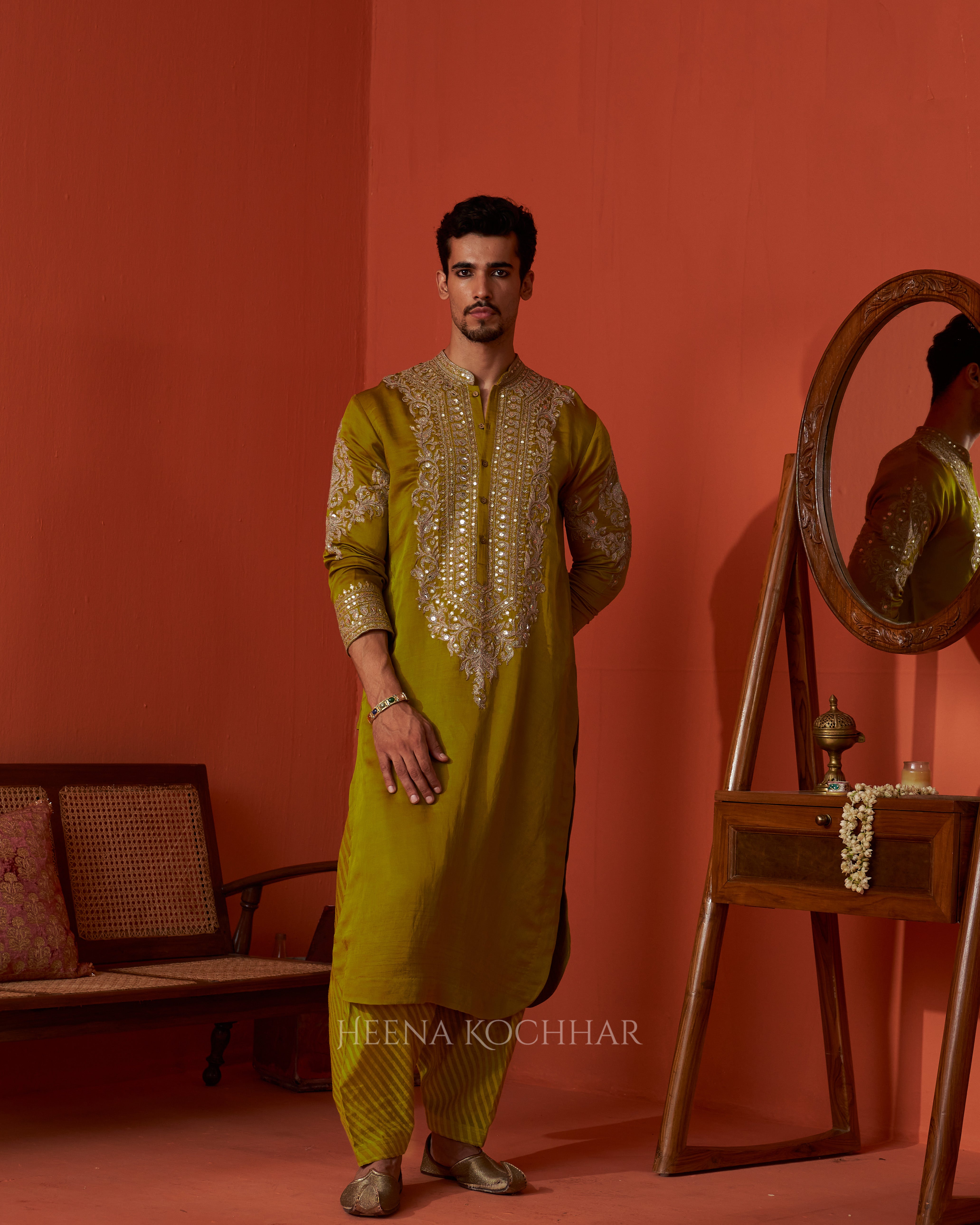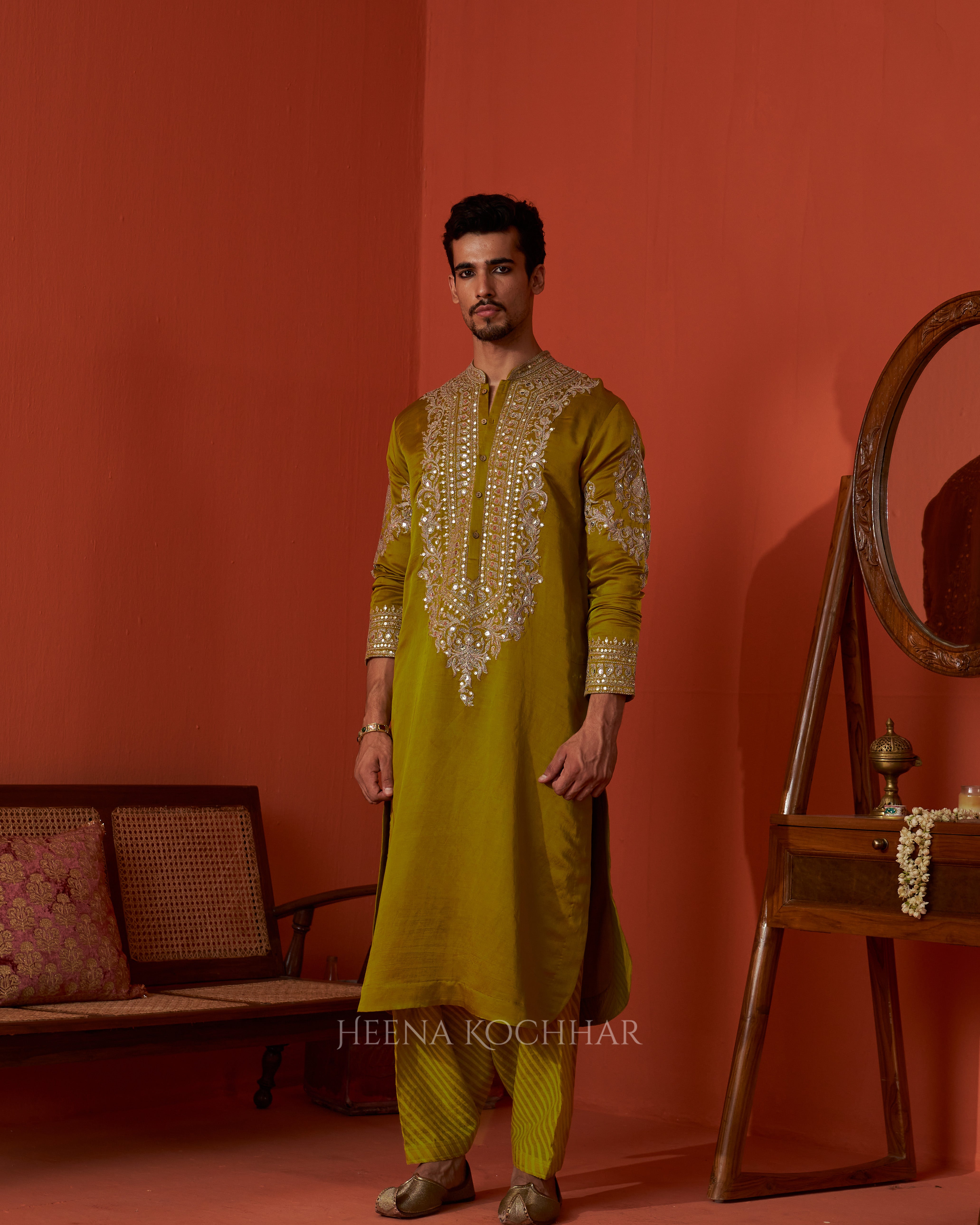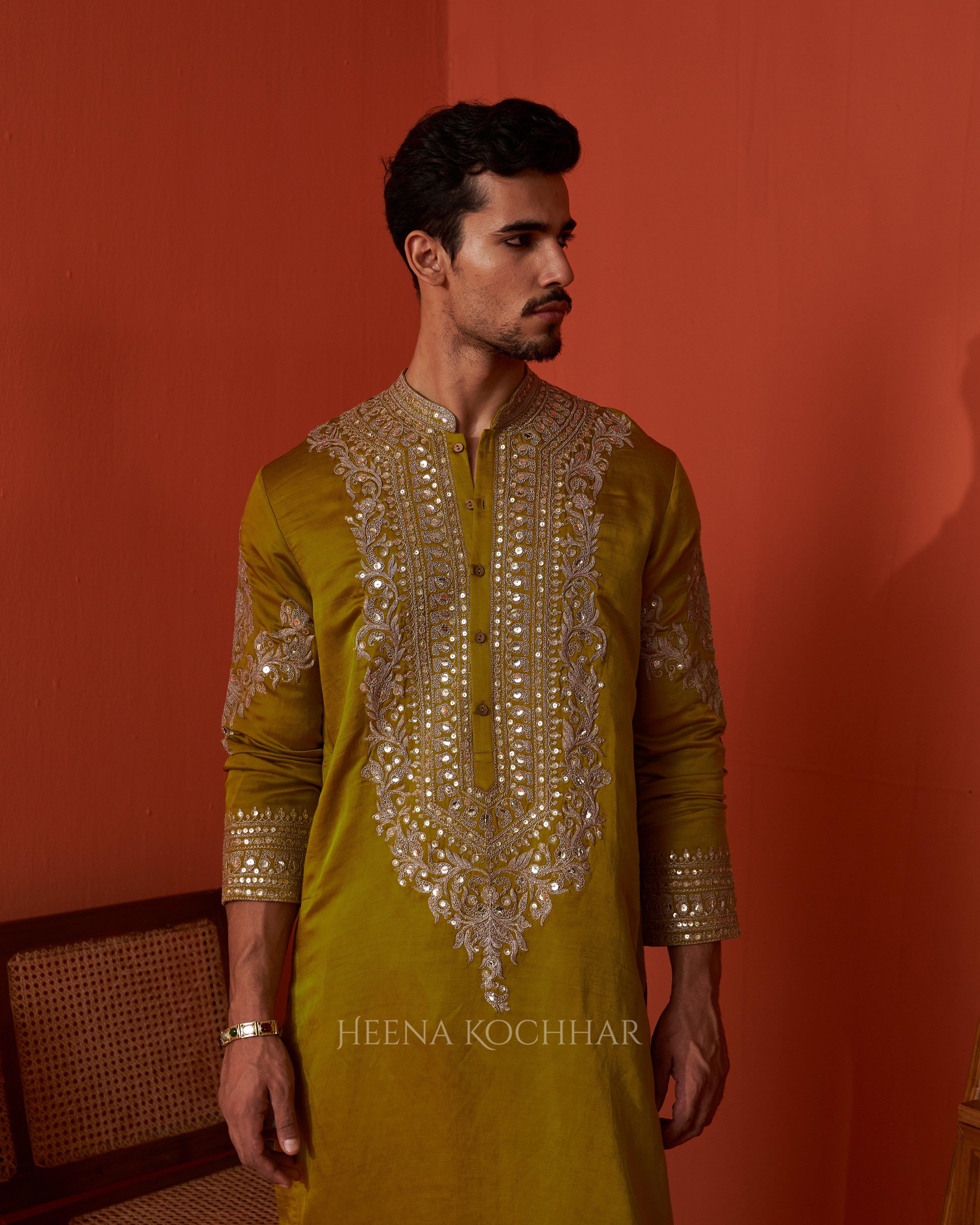 Kurta - Lime Green Silk Linen Kurta