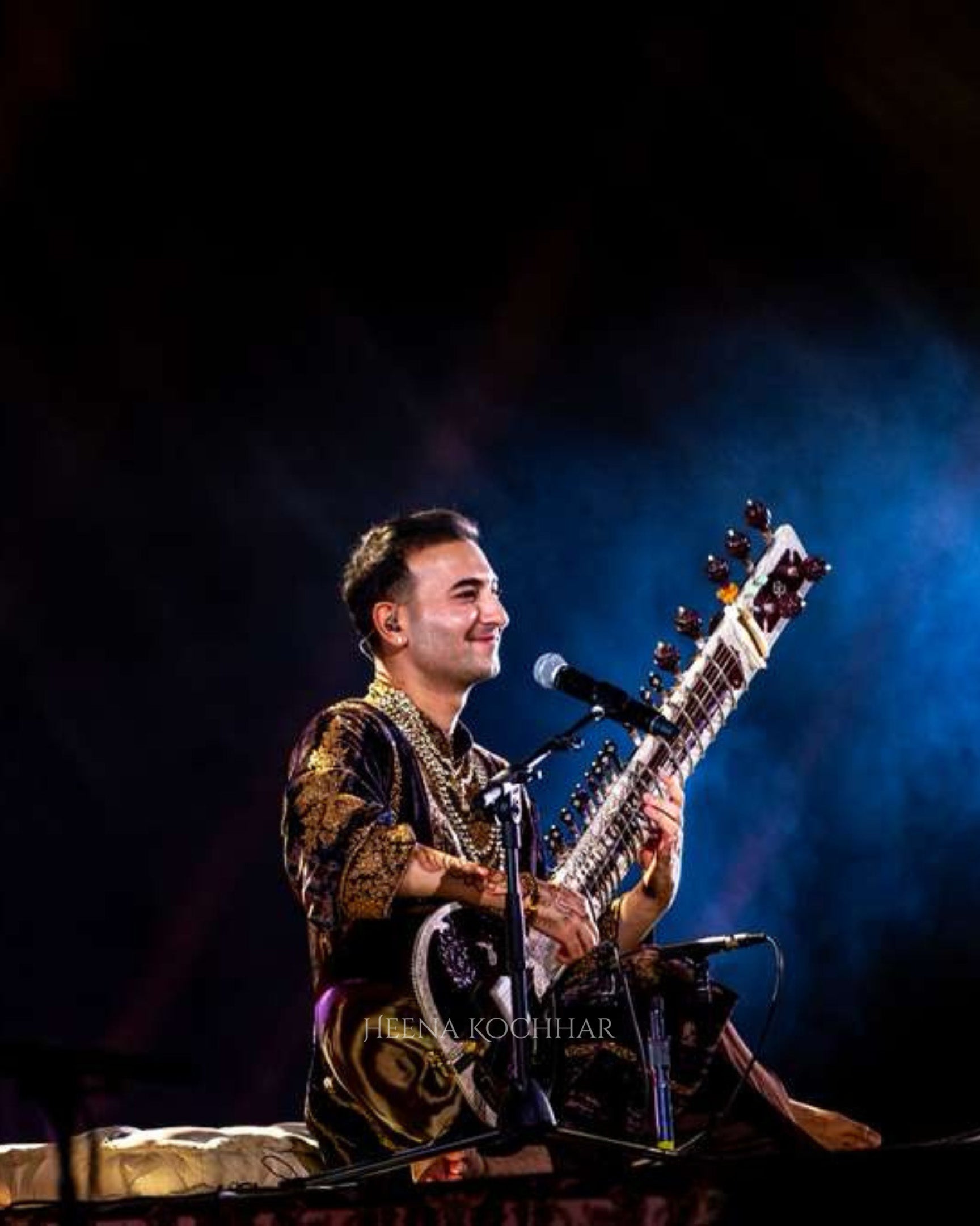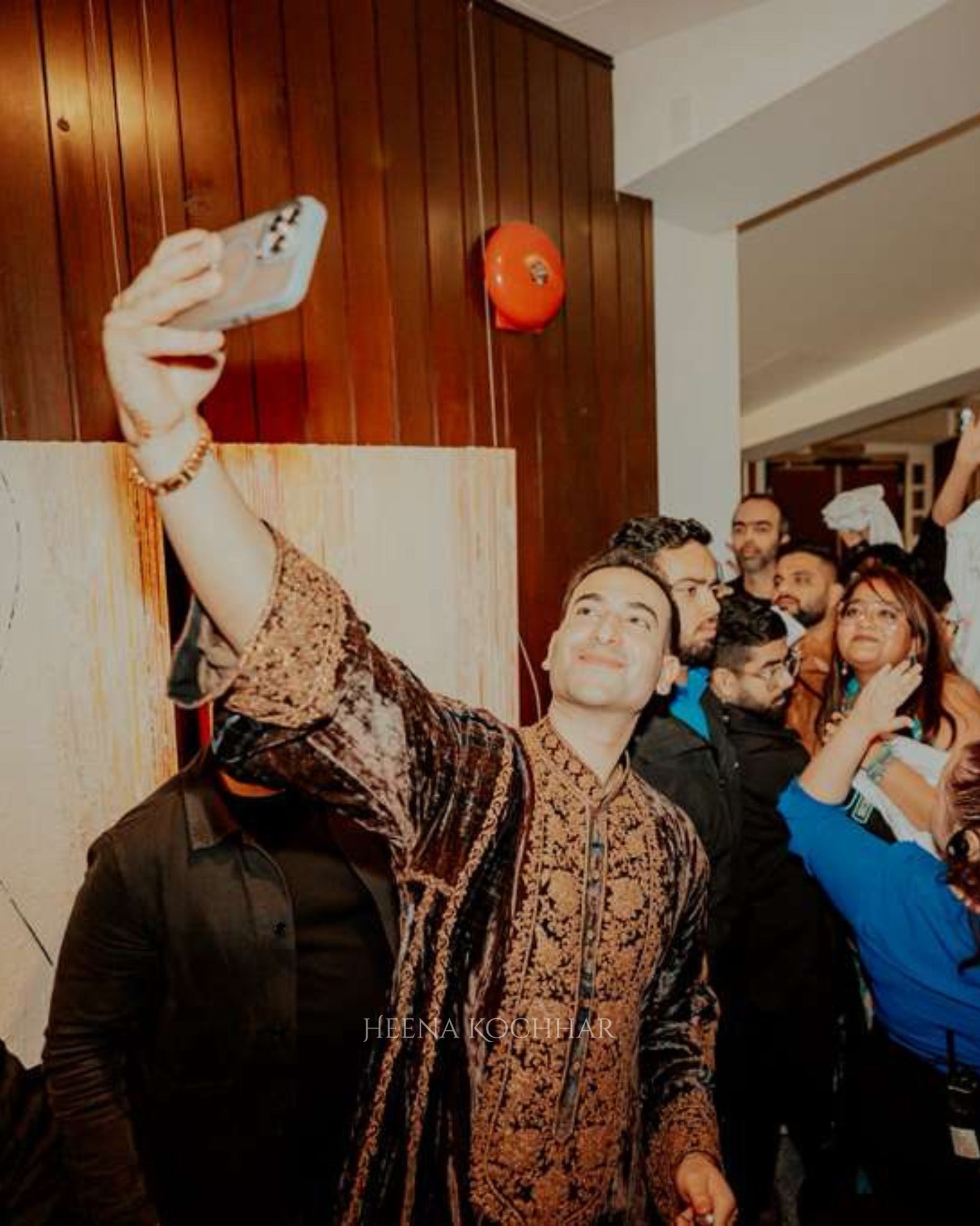 Dressed in a teal and brown tie-dye velvet choga, this look embodies the essence of quiet grandeur and festive grace. The rich hues merge seamlessly, creating a play of light and depth that feels both rooted and rare.