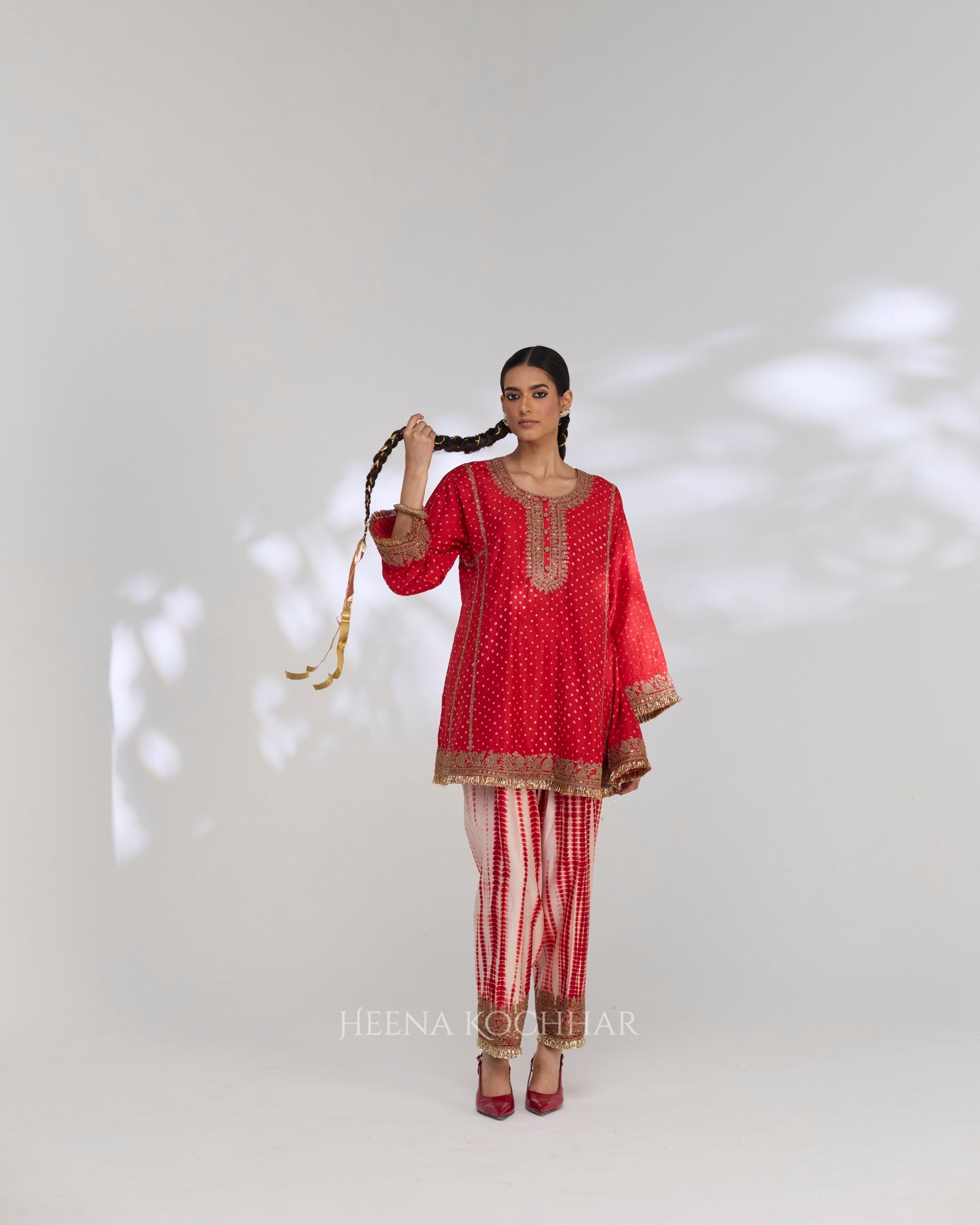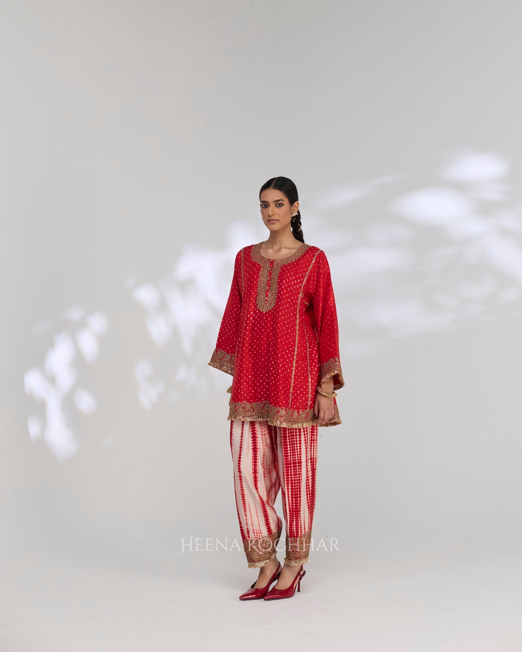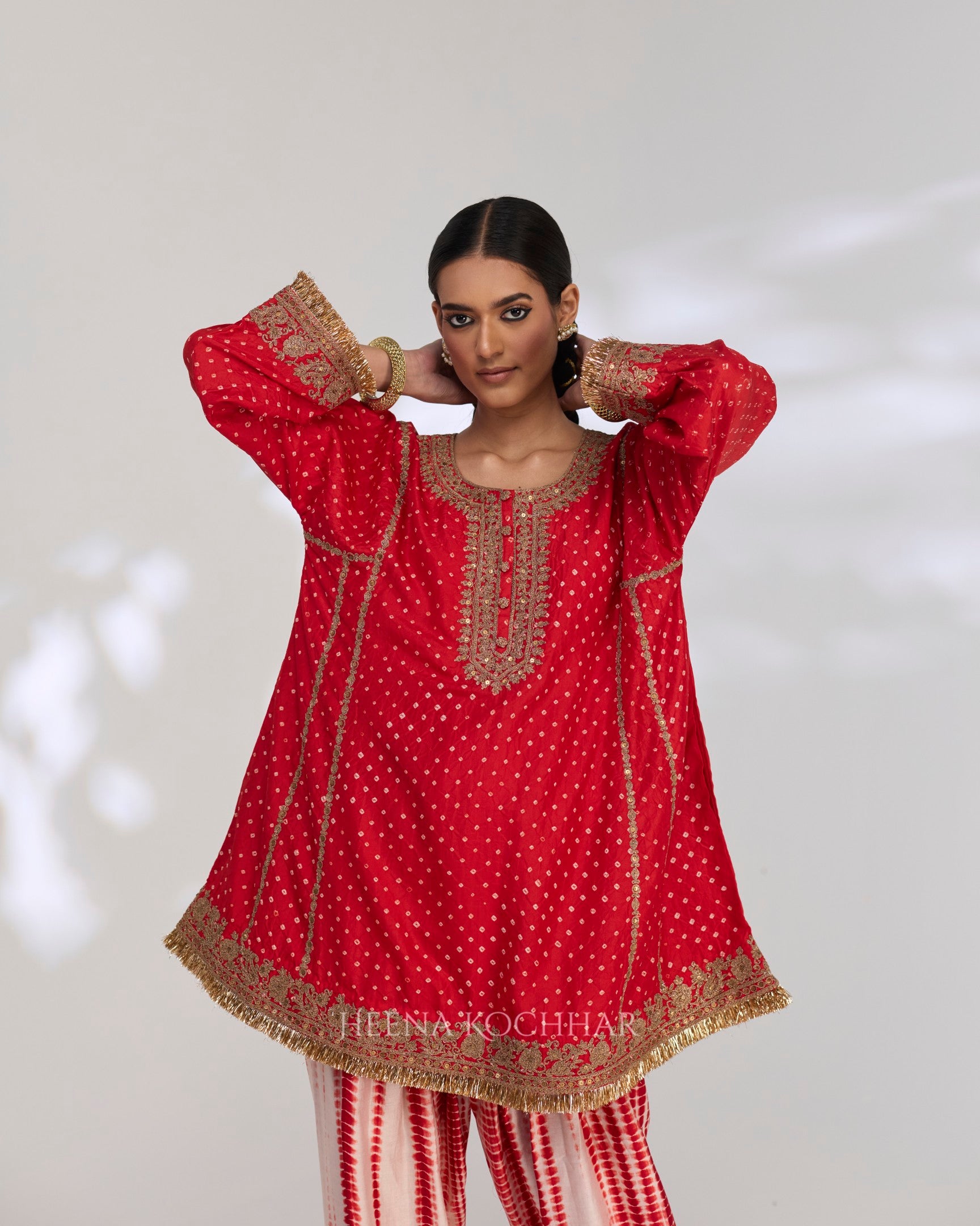 Kurta - Red Silk Bandhani Choga