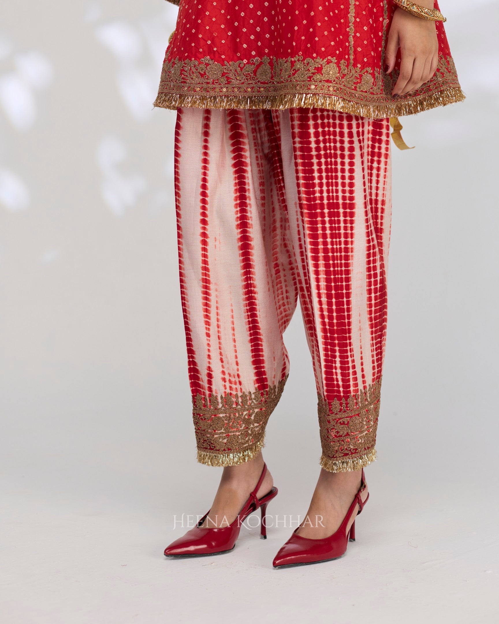 Bottom - Cream And Red Tie Dye Chanderi Salwar
