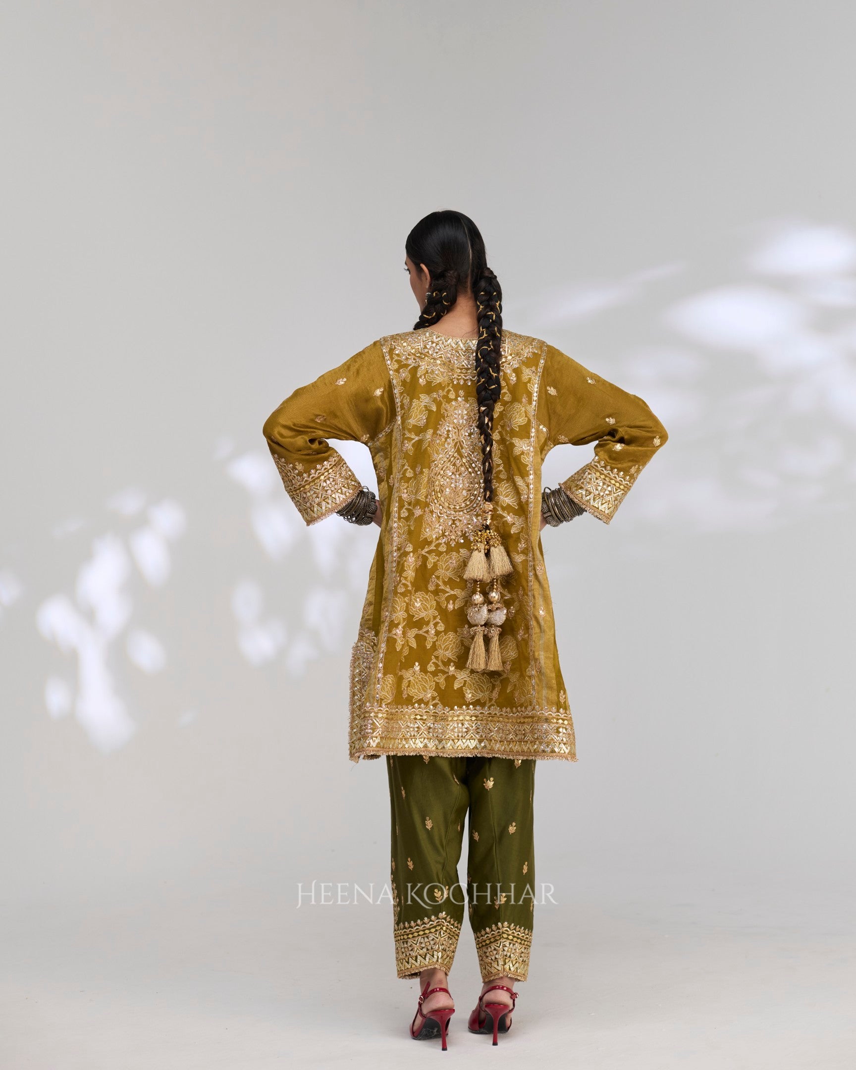 Kurta - Mehndi Green Banarshi Chanderi Choga