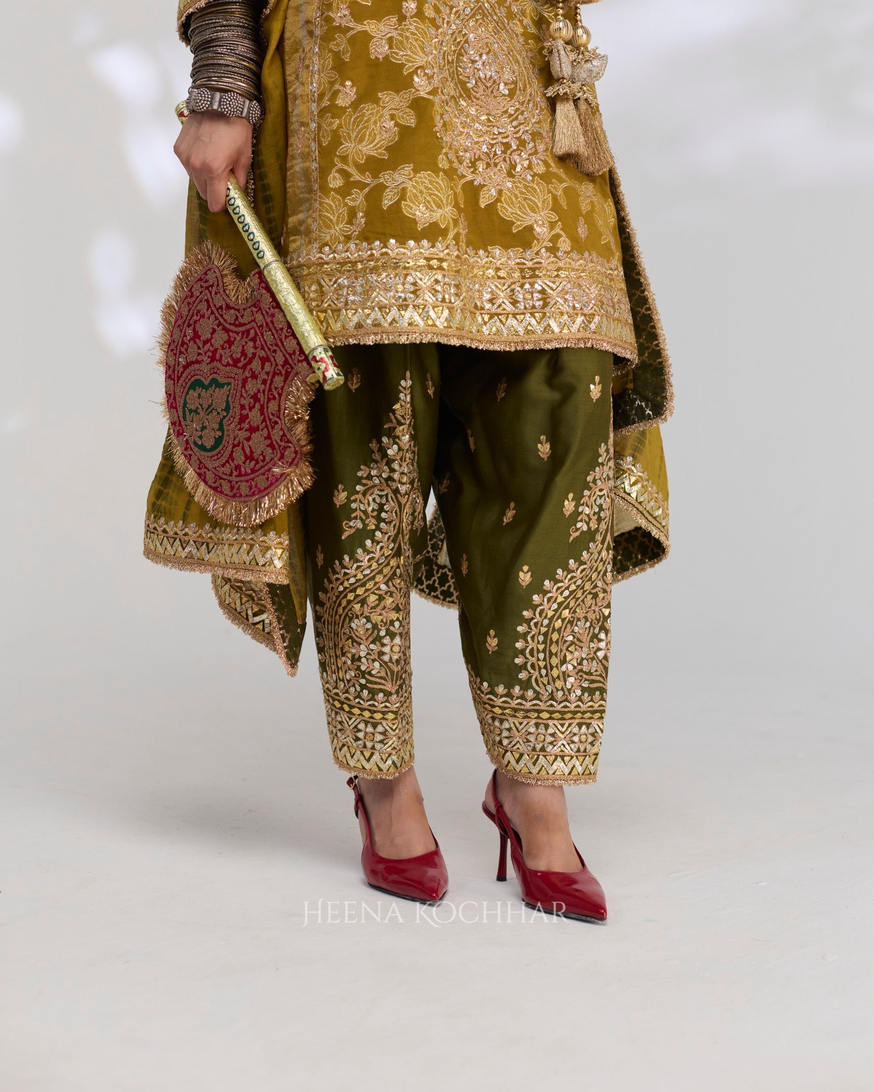 Bottom - Olive Green Chanderi