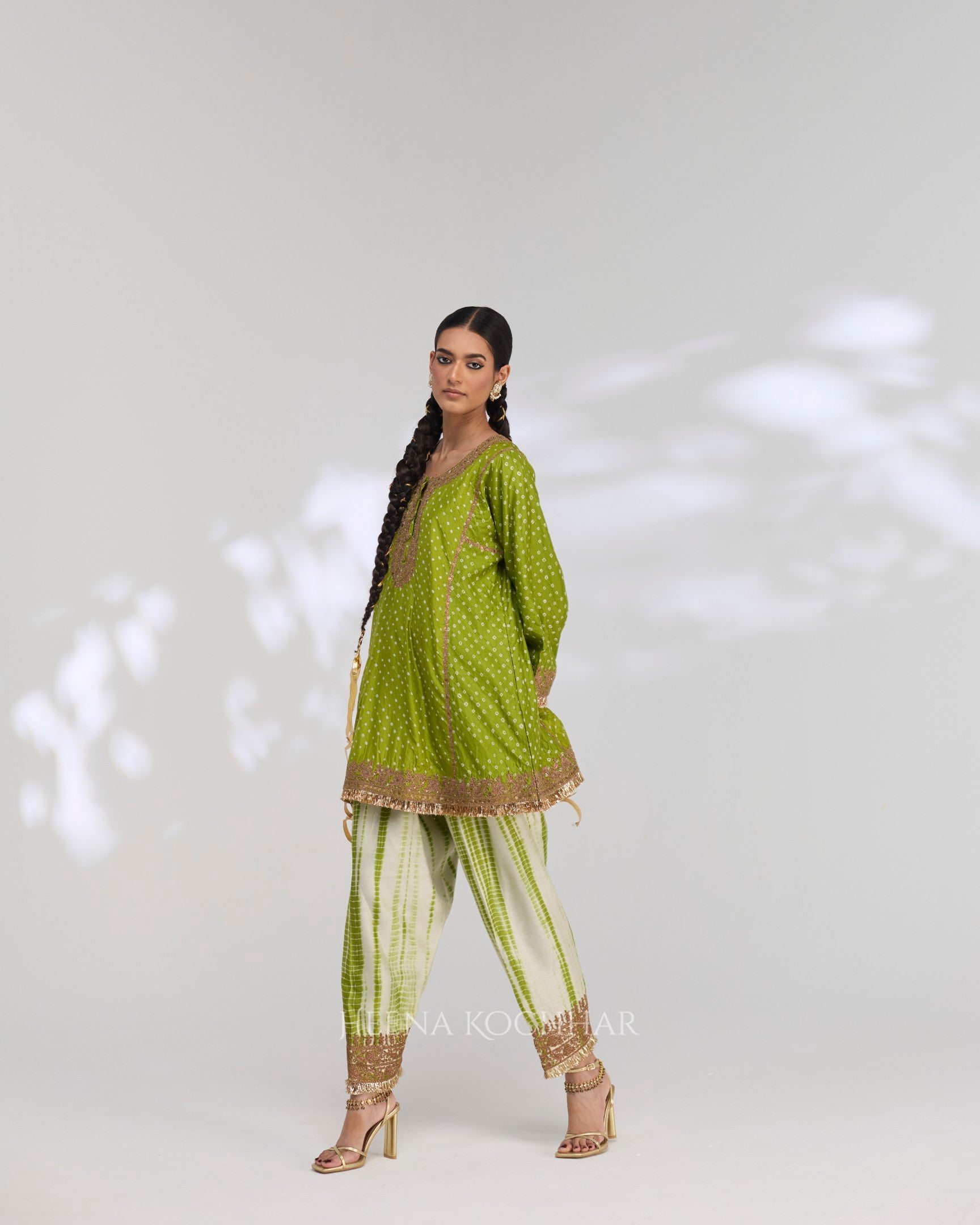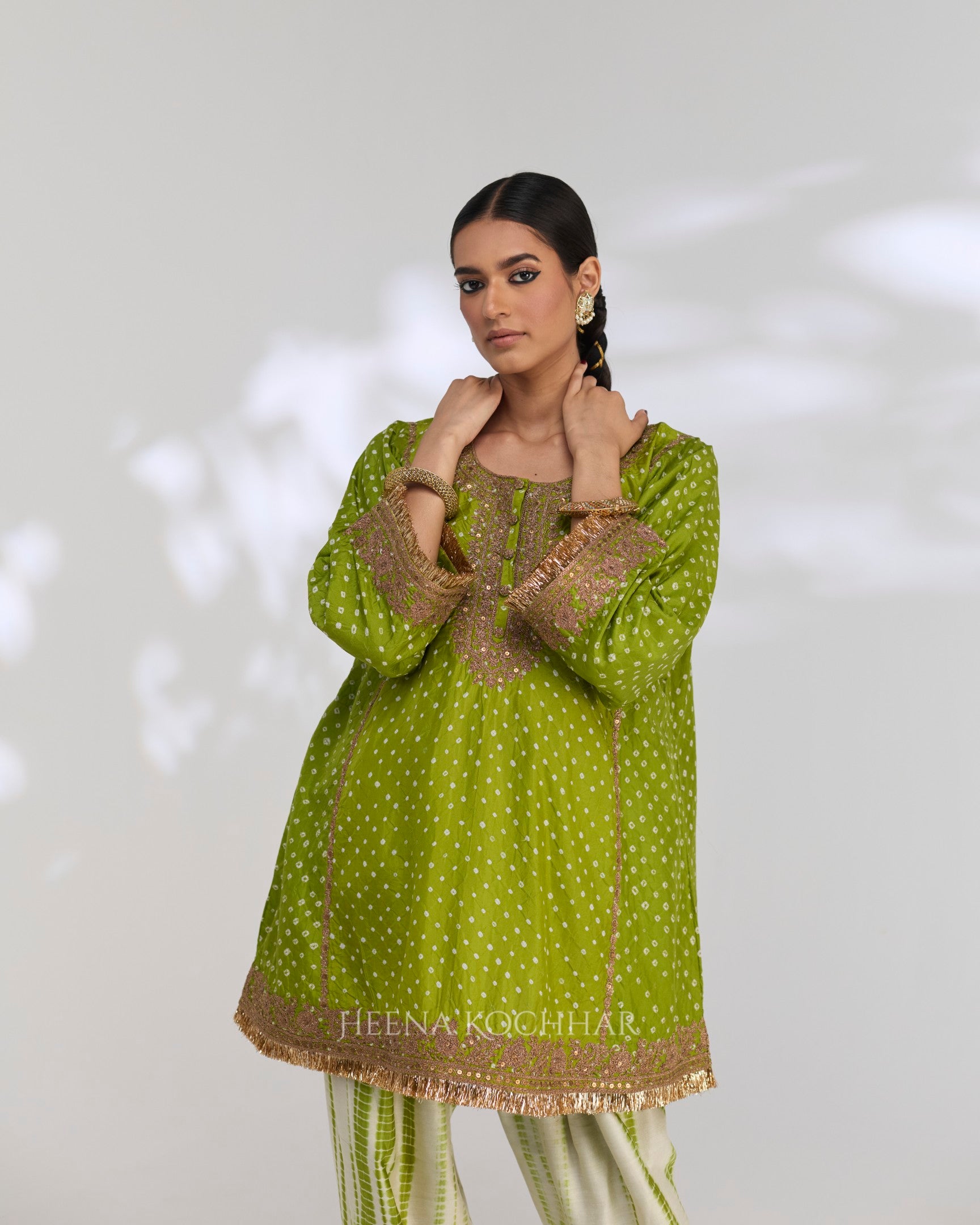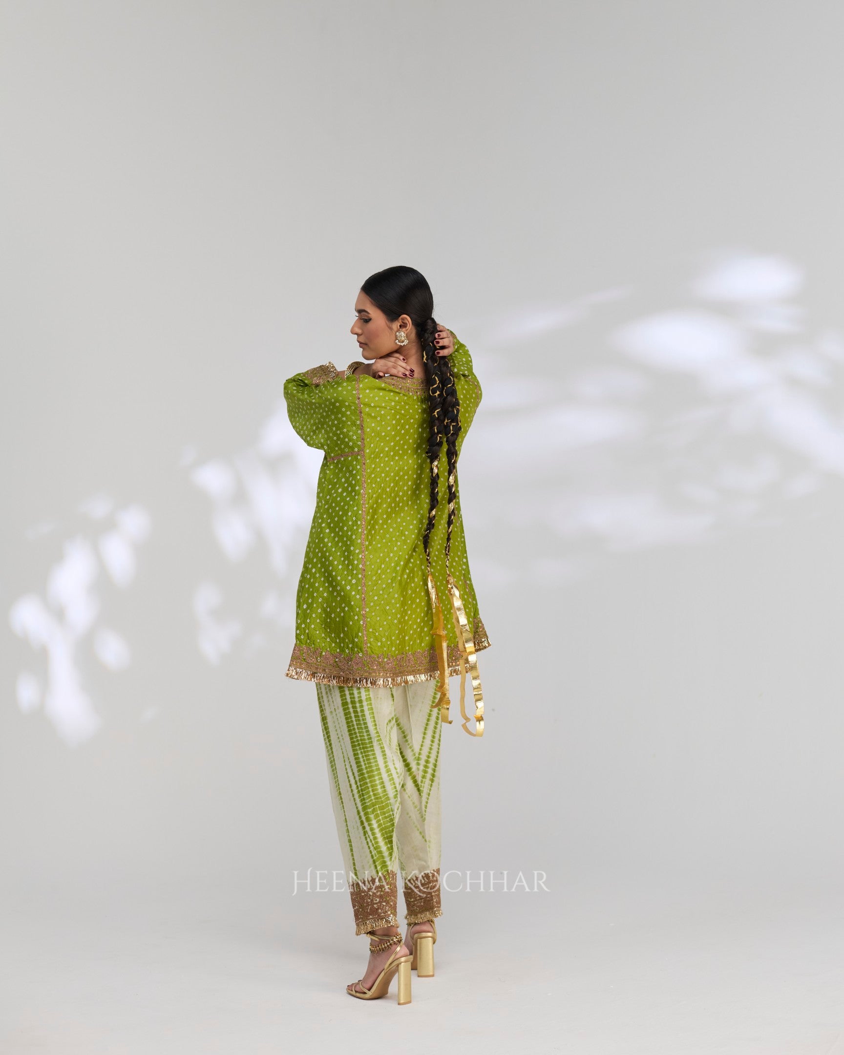 Kurta - Lime Green Silk Bandhani Choga