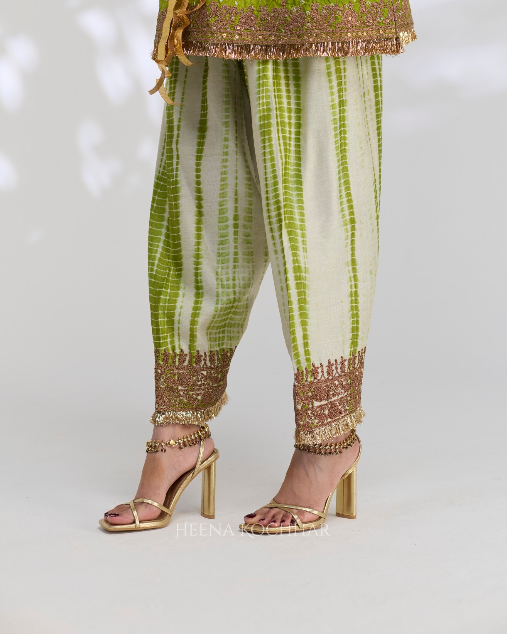 Bottom - Cream And Lime Green Tie Dye Chanderi Salwar