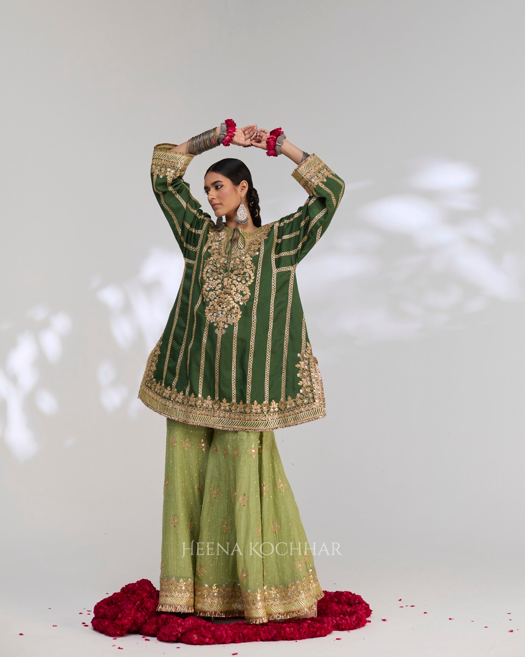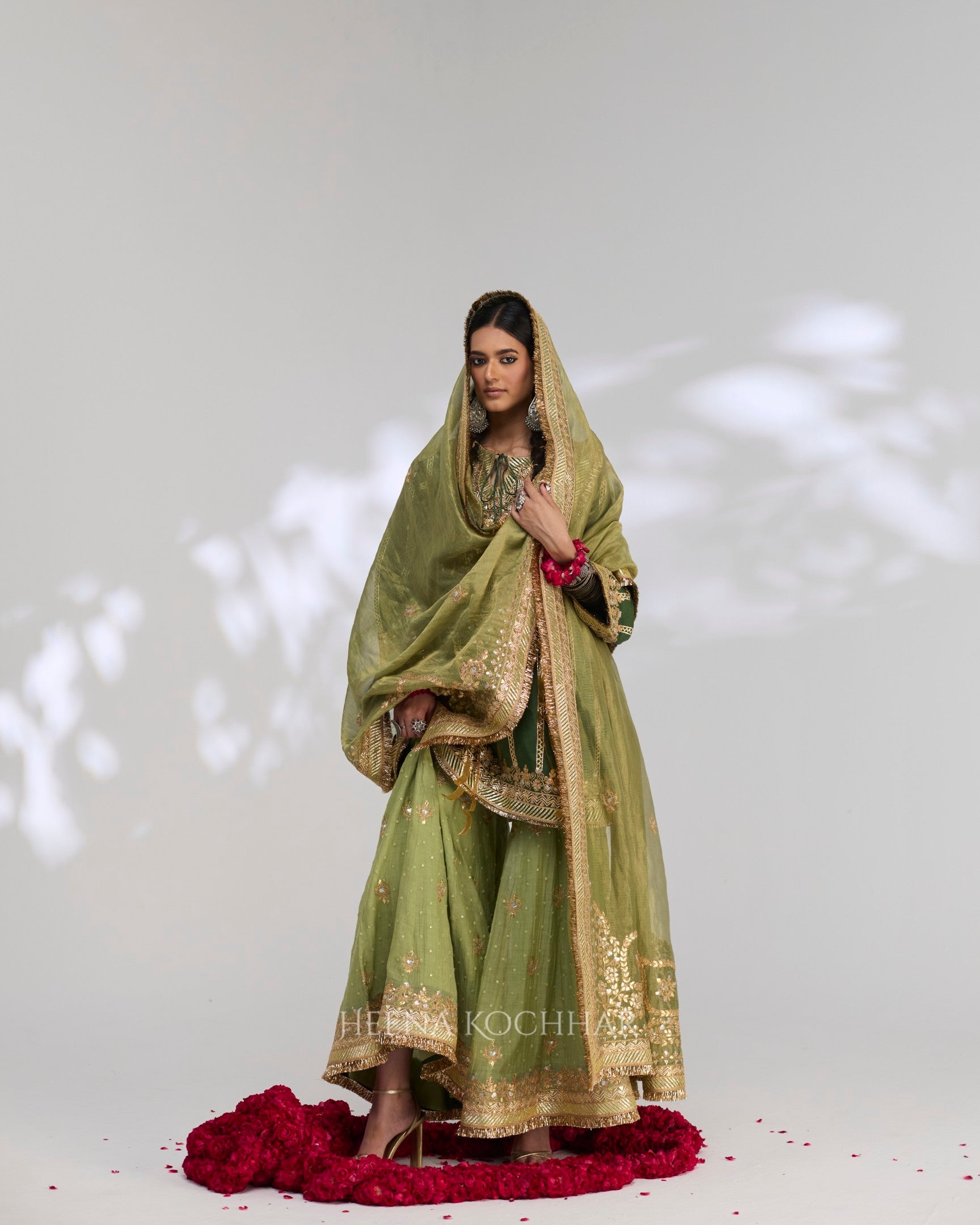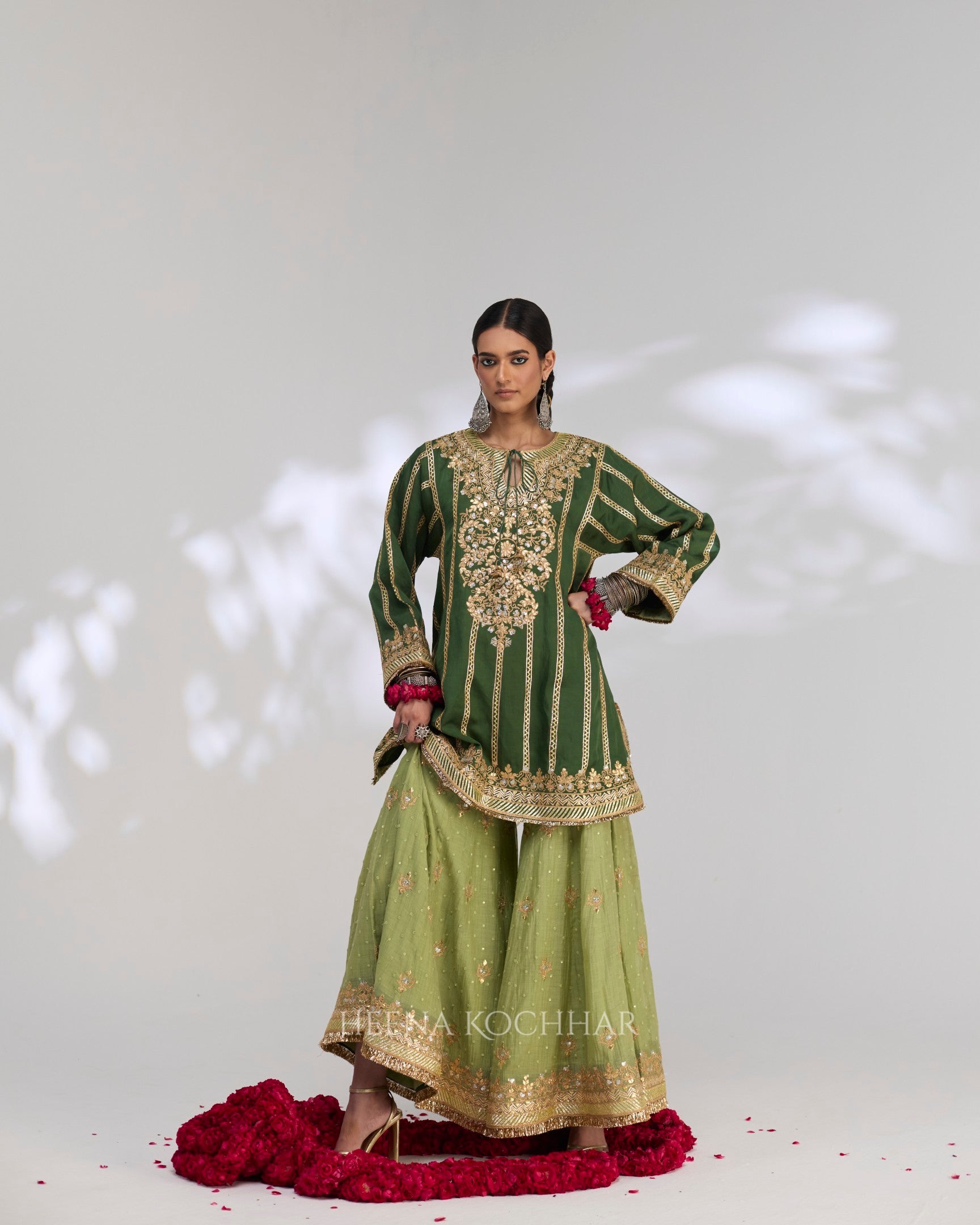 Bottom - Soft Lime Green Sitara Chanderi Garara