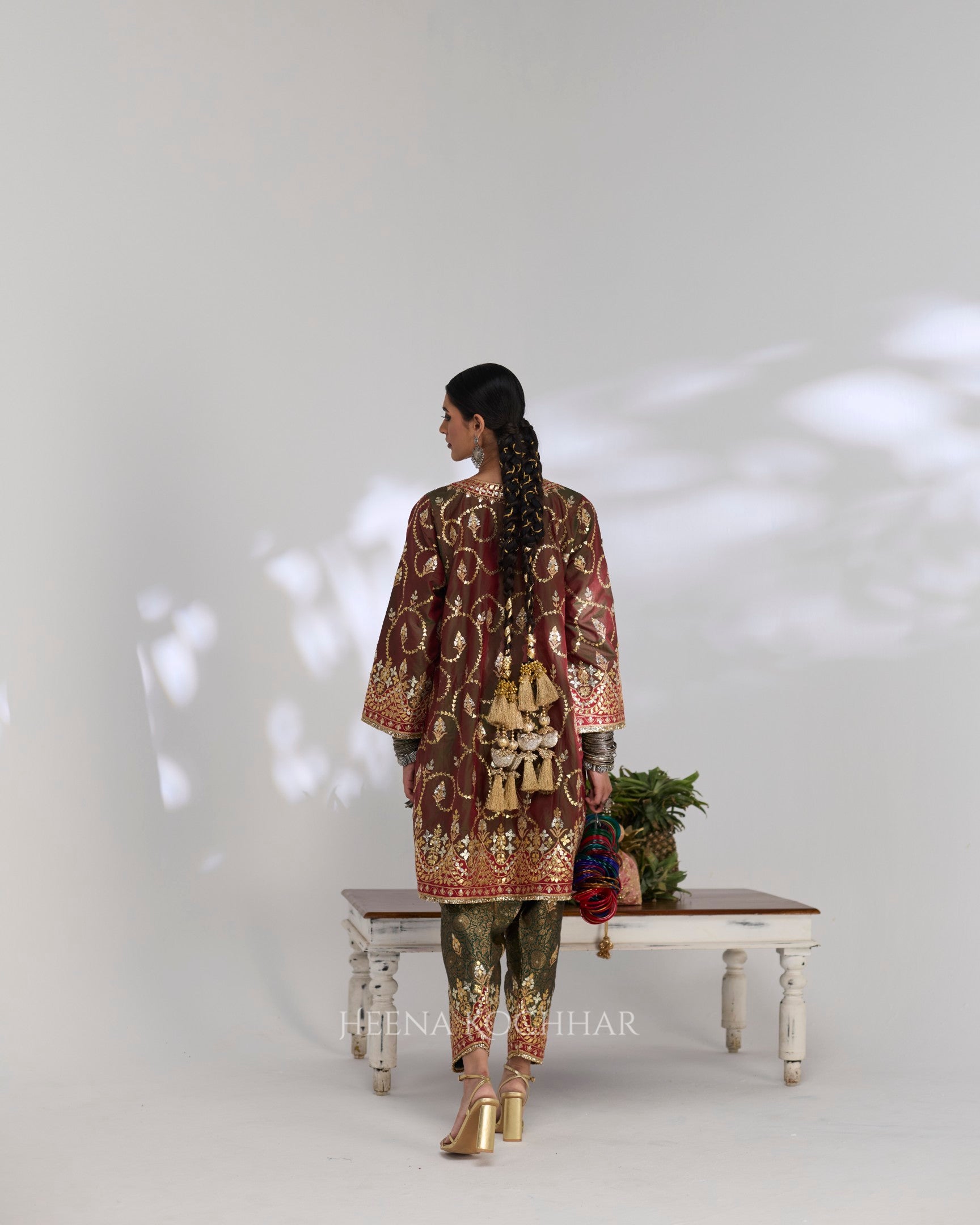 Kurta- Green And Maroon Two Tone Silk Choga