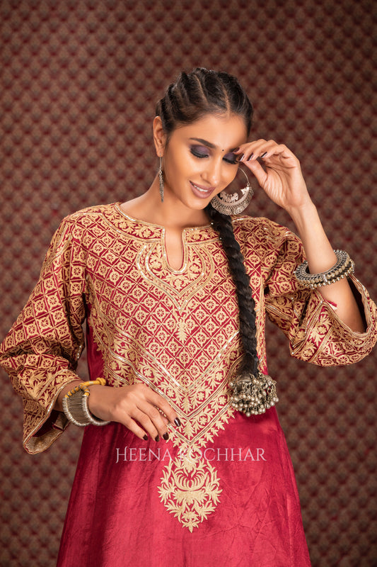 KURTA: Red Silk Choga BOTTOM TYPE: Red Velvet Farshi EMBROIDERY: Zari Ari Embroidery- From Rs. 59,400.00