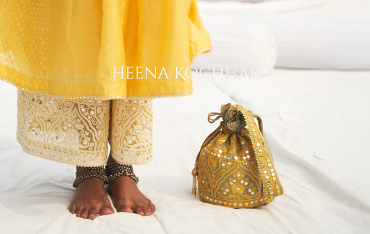 POTLI A soft hand made bag, embroidered with zari and sitara to complement your outfit and keep your valuables handy in style. DELIVERY: 16-21 Days- Rs. 9,700.00