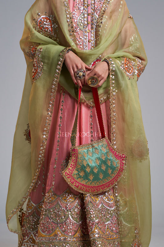 POTLI A soft hand made bag, embroidered with Resham and sitara to complement your outfit and keep your valuables handy in style. DELIVERY: 16-21 Days- Rs. 7,800.00